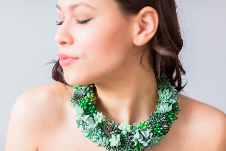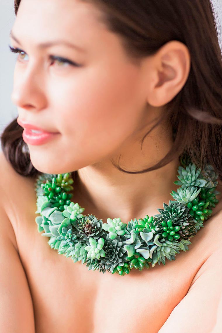 Passionflower es una florería boutique creada por Susan McLeary en Ann Arbor, Michigan, que se especializa en realizar joyería “viva”. Así como lo lees: son collares, anillos, pulseras y vinchas armadas con suculentas y pensadas para ocasiones especiales, ya que no duran más de un par de semanas en los accesorios.