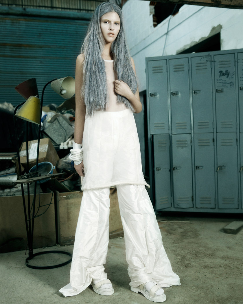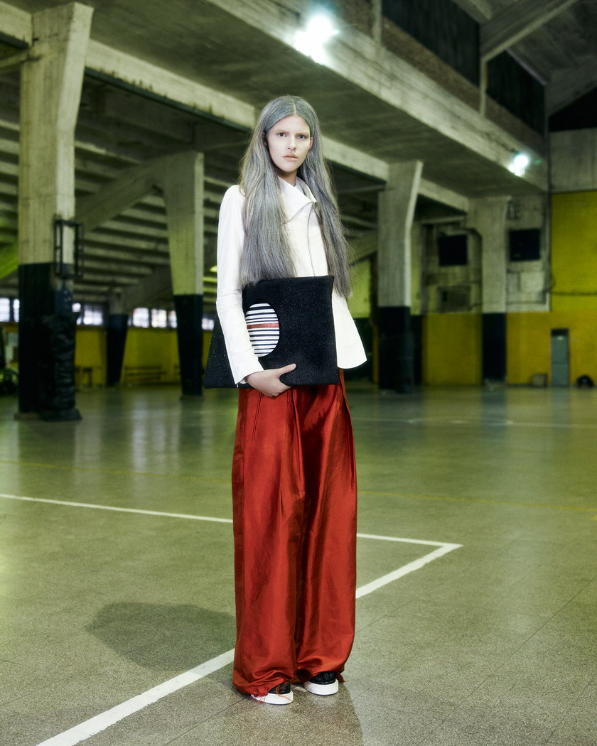 Así es como nos encontramos con una colección ecléctica que combina pantalones de múltiples cortes y formas con tops en los que abundan las transparencias, los drapeados que tanto la caracterizan, pero también una nueva línea de precisa geometría que se vale de la superposición de planos para generar volúmenes que cobran vida propia y generan recorridos dinámicos, especialmente cuando están en movimiento.
