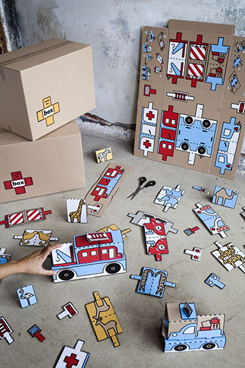 “Inside the Box” es su proyecto, en el que juegos coloridos, vehículos y animales se imprimen en el interior de la caja para así poder ser usados como juguetes por los niños. Como dice Koning en su web personal, “De esta manera, las cajas de ayuda no se desperdician, sino que adquieren una nueva vida, iluminando los días de los más vulnerables”. Los niños pueden recortar imágenes y pegarlas, con hasta dados que se pueden utilizar en juegos de mesa que vienen impresos en el interior.