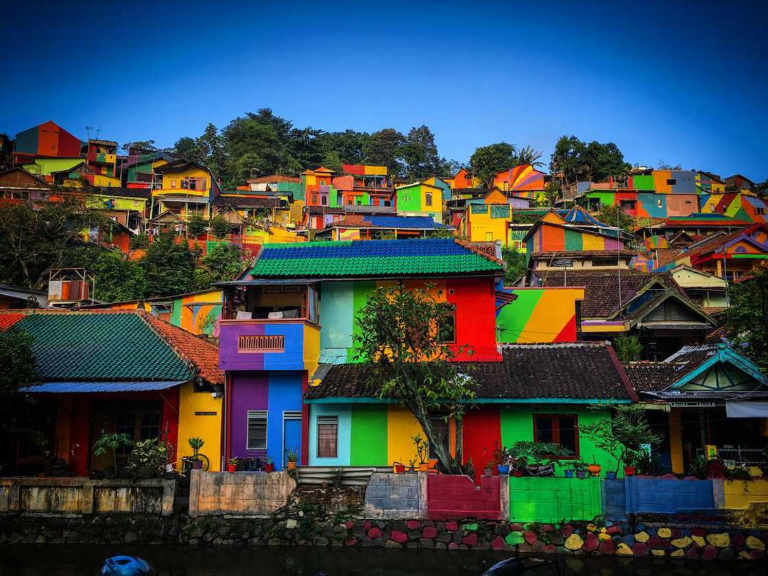 Kampung Pelangi es la aldea arcoiris, literalmente, un pequeño pueblo en Indonesia donde sus 232 casas fueron pintadas con formas geométricas y colores brillantes. Con el objetivo de promover el turismo y ayudar a los lugareños, el gobierno financió un impresionante takeover de artistas callejeros liderados por Slamet Widodo. Apto para fondos de Instagram, seguro.