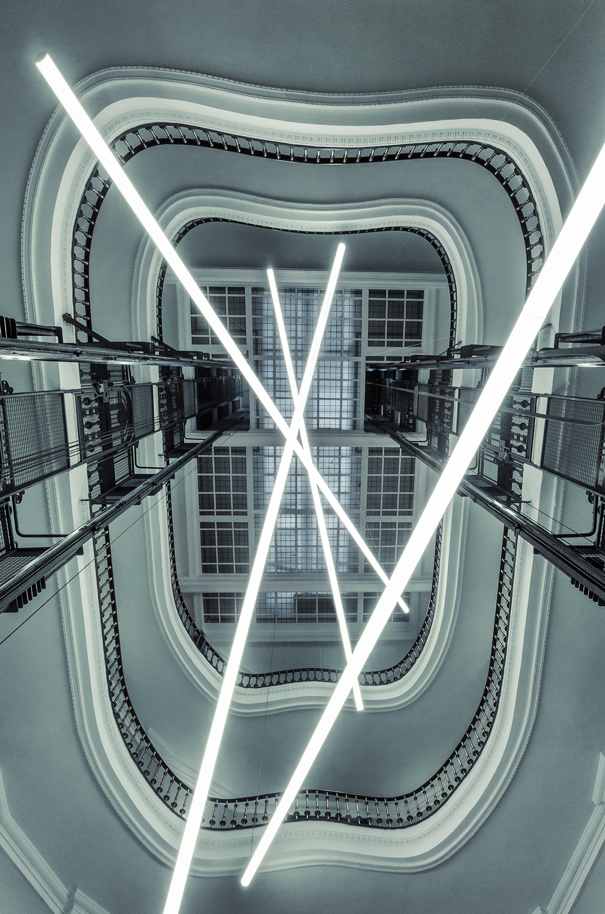 El fotógrafo español Jesus M. Chamizo se encargó de fotografiar estas obras para una exhibición en el hall y los 9 pisos del edificio Gran Via 27.
