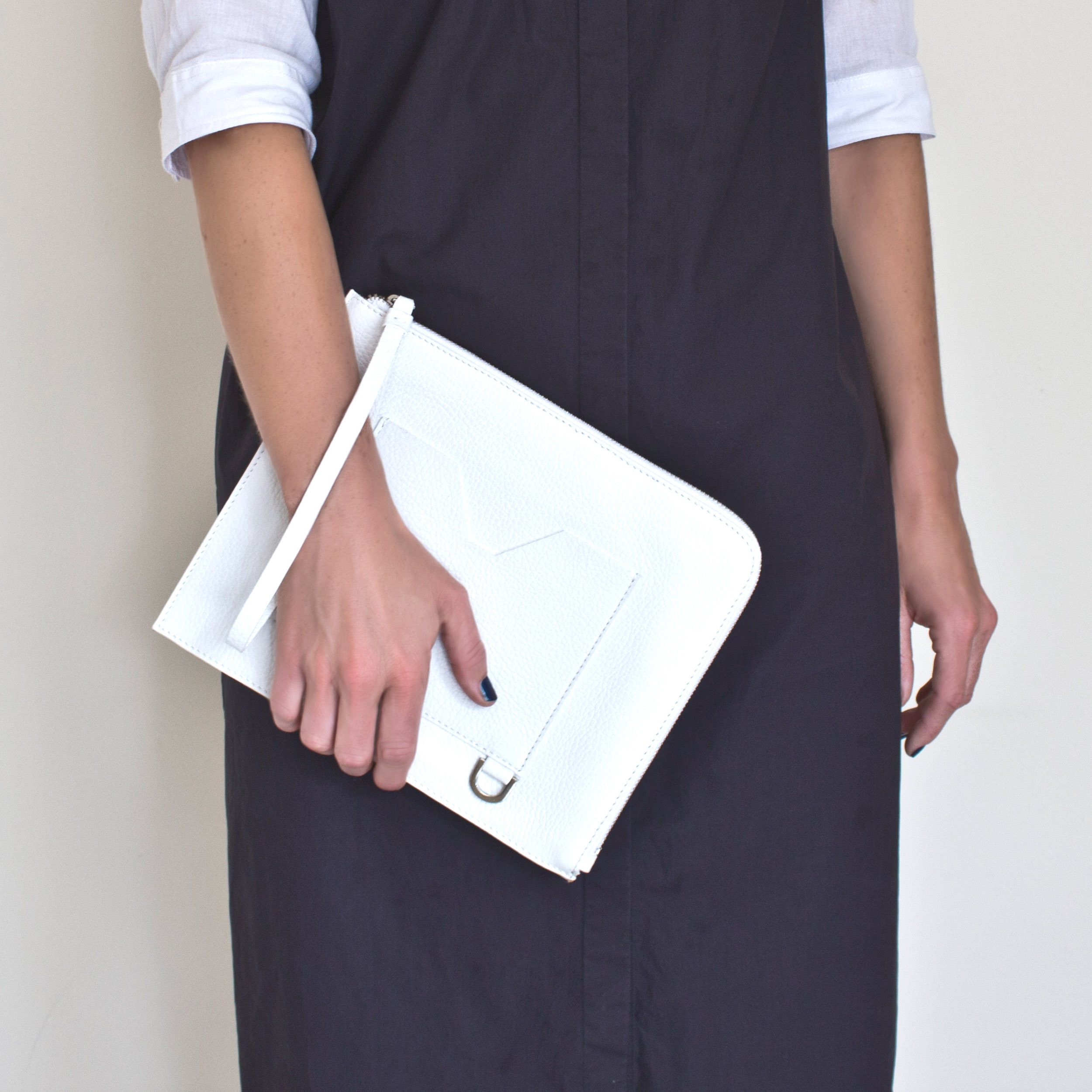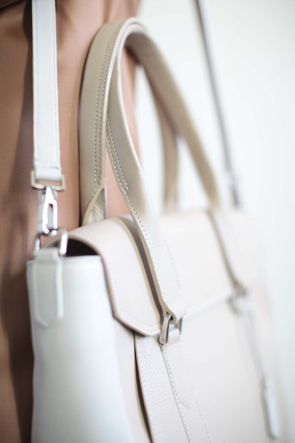 Hay un fino balance entre ambos países. En la colección encontramos desde sobres y billeteras hasta bandoleras y maxicarteras confeccionadas en los mejores cueros nacionales, charoles, piel de cabra y napa en flor; con una paleta monocromática y acentos en crudo, metalizados, bordeaux y verde de acuerdo a la temporada. Pero la estética y las influencias en el diseño son europeas, con las líneas limpias y puras de la arquitectura de Le Corbusier y los sutiles diseños de Martin Margiela, de donde surge la propuesta de disimular herrajes para que se conviertan en rasgos casi invisibles del recorrido geométrico que plantearon las diseñadoras en sus primeras piezas, en las que reina la funcionalidad con la forma como una anécdota que acompaña.