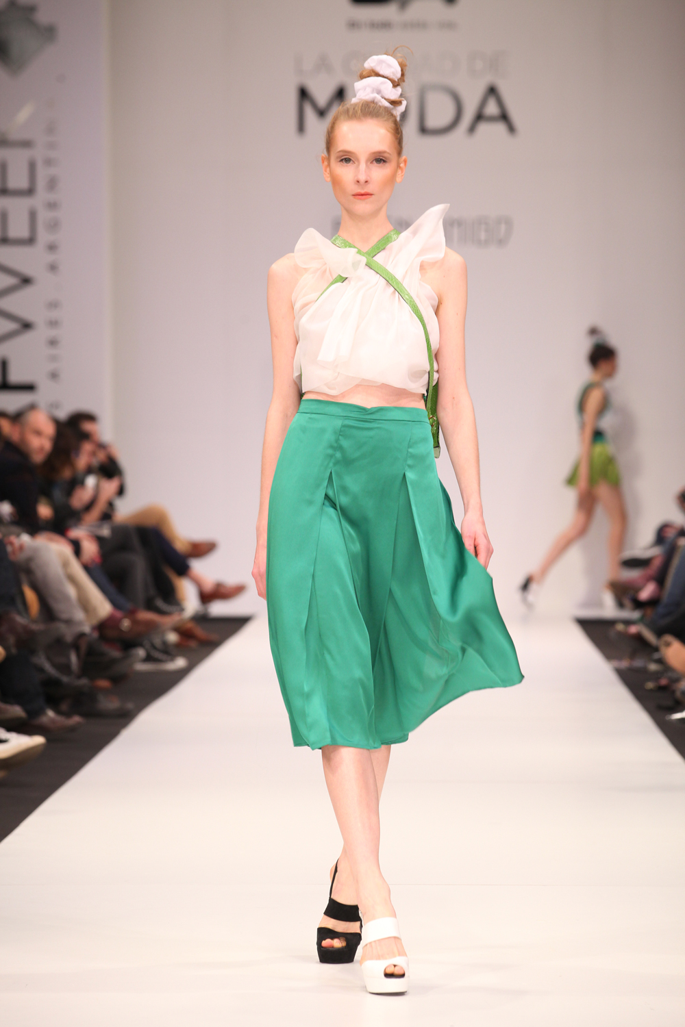 Luego de una auspiciosa primera presentación en la última edición de La Ciudad de Moda (la podés ver acá), la diseñadora se valió del imaginario teen, el esmeralda, las colitas altas y su fijación con el sportwear chic y los drapeados para crear una colección fresca, juvenil y ciertamente inesperada pero no por ello menos encantadora.
