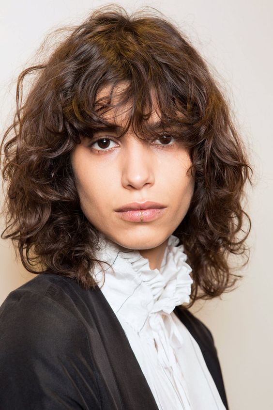 Ahora los flequillos se llevan con textura, incluso levemente ondulados. Si se animan a este estilo, lo van a lucir en un corte capeado que respeta el rizo o las ondas naturales del cabello hasta en el flequillo. Es el compañero ideal para el corte “wob”, que nace de la contracción de wave (onda) y bob (melenita). Este flequillo se luce desgarbado, con el rizo sin pulir y, generalmente, dividido en mechones desiguales.
