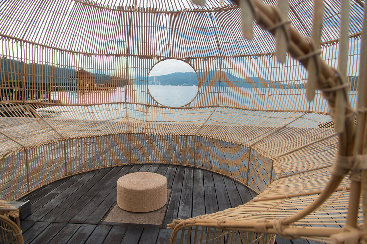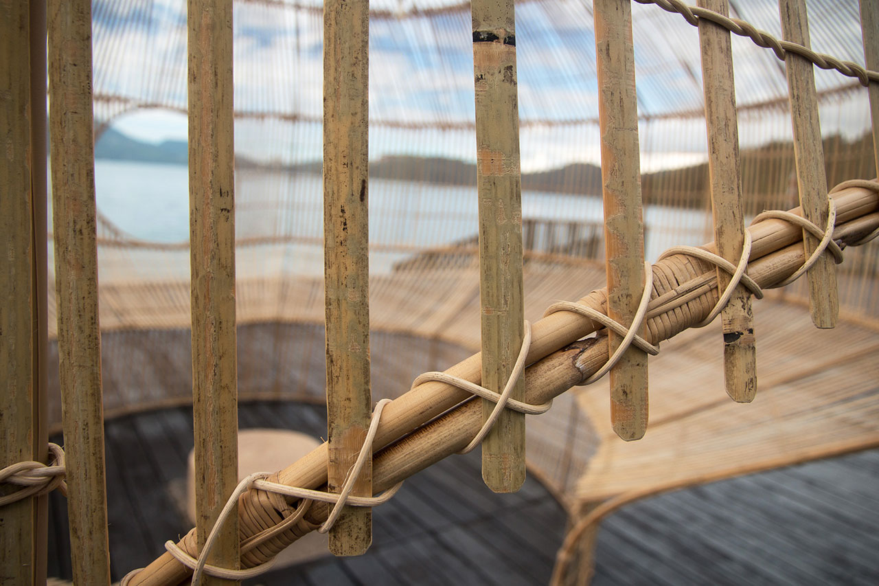 A lo largo de la línea entre arquitectura, arte y artesanía, las instalaciones de bambú del artista y diseñador taiwanés Cheng-Tsung Feng son a la vez monumentales e íntimas. Grandes en escala, ricas en detalles y misteriosas en función, sus construcciones esculturales invitan a los visitantes no solo a entrar, sino también a determinar qué son: ¿objetos de utilidad de gran tamaño, refugios conceptuales o trampas sin pretensiones? Las creaciones ligeras de Feng, hechas a mano y basadas en técnicas de tejido de bambú de siglos de antigüedad, rinden homenaje a una embarcación tradicional que se remonta a la era prehistórica y, al mismo tiempo, prevén un futuro alternativo para ella. De hecho, Feng también diseña objetos de bambú para el hogar, como vajillas, accesorios de iluminación y muebles, cuya producción artesanal se ha optimizado de acuerdo con los principios de la fabricación industrial moderna, como la producción de modelos y la división del trabajo. Producida en masa o única, utilitaria o conceptual, grande o pequeña, es el trabajo manual que otorga a las creaciones de bambú de Feng una dimensión espiritual que canaliza la sabiduría acumulada de este antiguo oficio.
