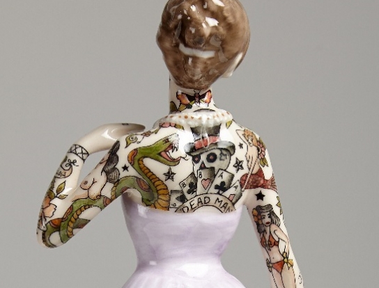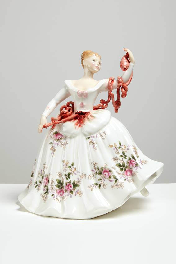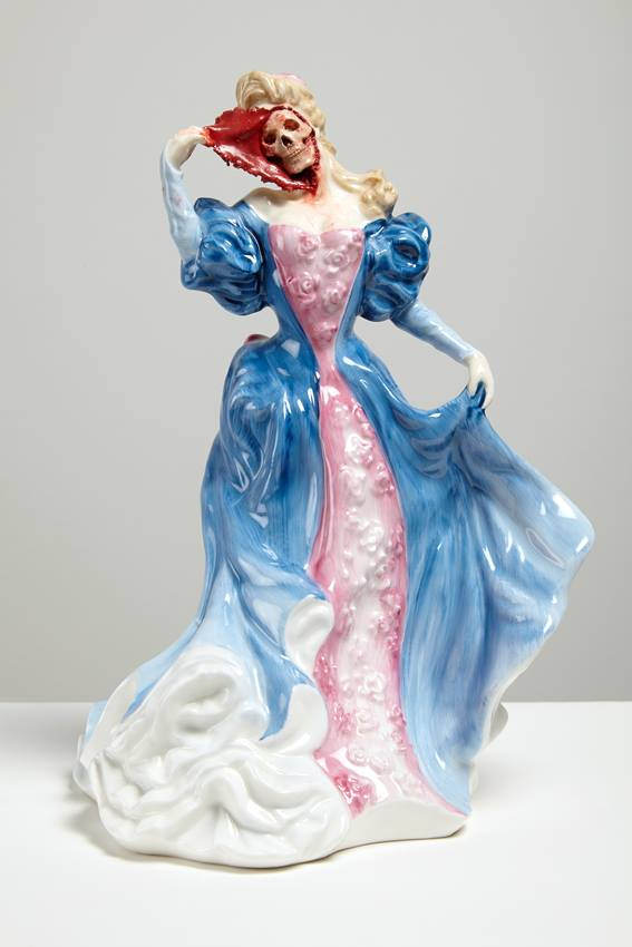 Trabaja principalmente con cerámica y crea unos figurines de muñecas de la época victoriana a los cuales pinta para darles un lado oscuro, llenándolos de tatuajes o generando mutaciones en el cuerpo (si, un poco siniestro), pero el trabajo que crea es realmente muy bueno.