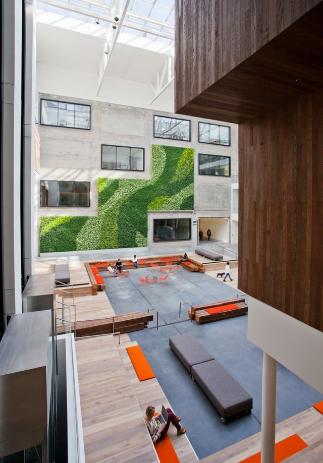 En apariencia varios departamentos dentro de una misma estructura, el edificio cuenta con un gran espacio común que se unifica con una pared vegetal completa, además de ostentar muchos detalles en madera, variedad de muebles de diseño en colores y varios interiores que no necesariamente siguen la misma línea pero armonizan perfectamente con el estilo de la marca.