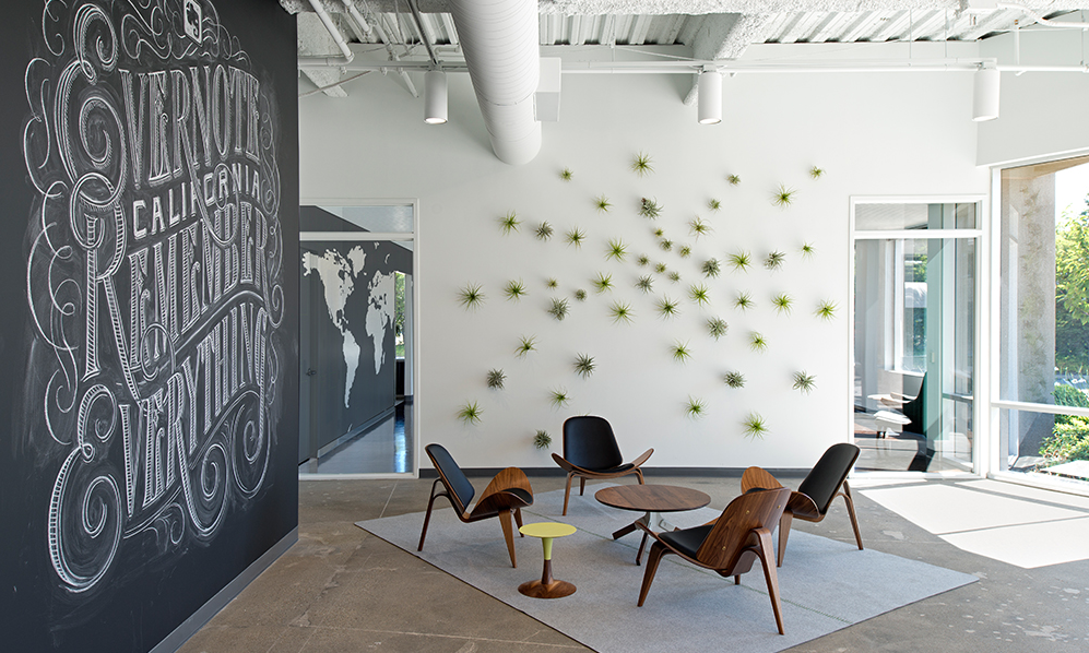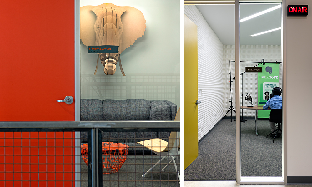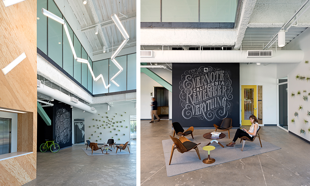 El estudio O+A de San Francisco se encargó del diseño de las oficinas de Evernote, la empresa Californiana nacida de un startup que nos permite recordar todas las cosas importantes de nuestra vida cotidiana, guardando todo en nuestros teléfonos, tableta y en la web.