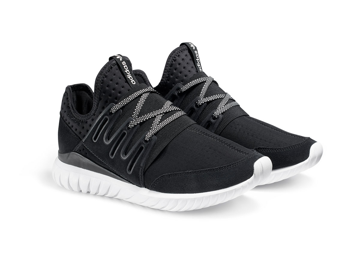 Las Tubular Radial son el modelo más fiel a la silueta original del archivo noventoso de la marca, adaptado al estilo de hoy gracias a un mix de neoprene y gamuza en una confección tipo media para lograr el ajuste perfecto.