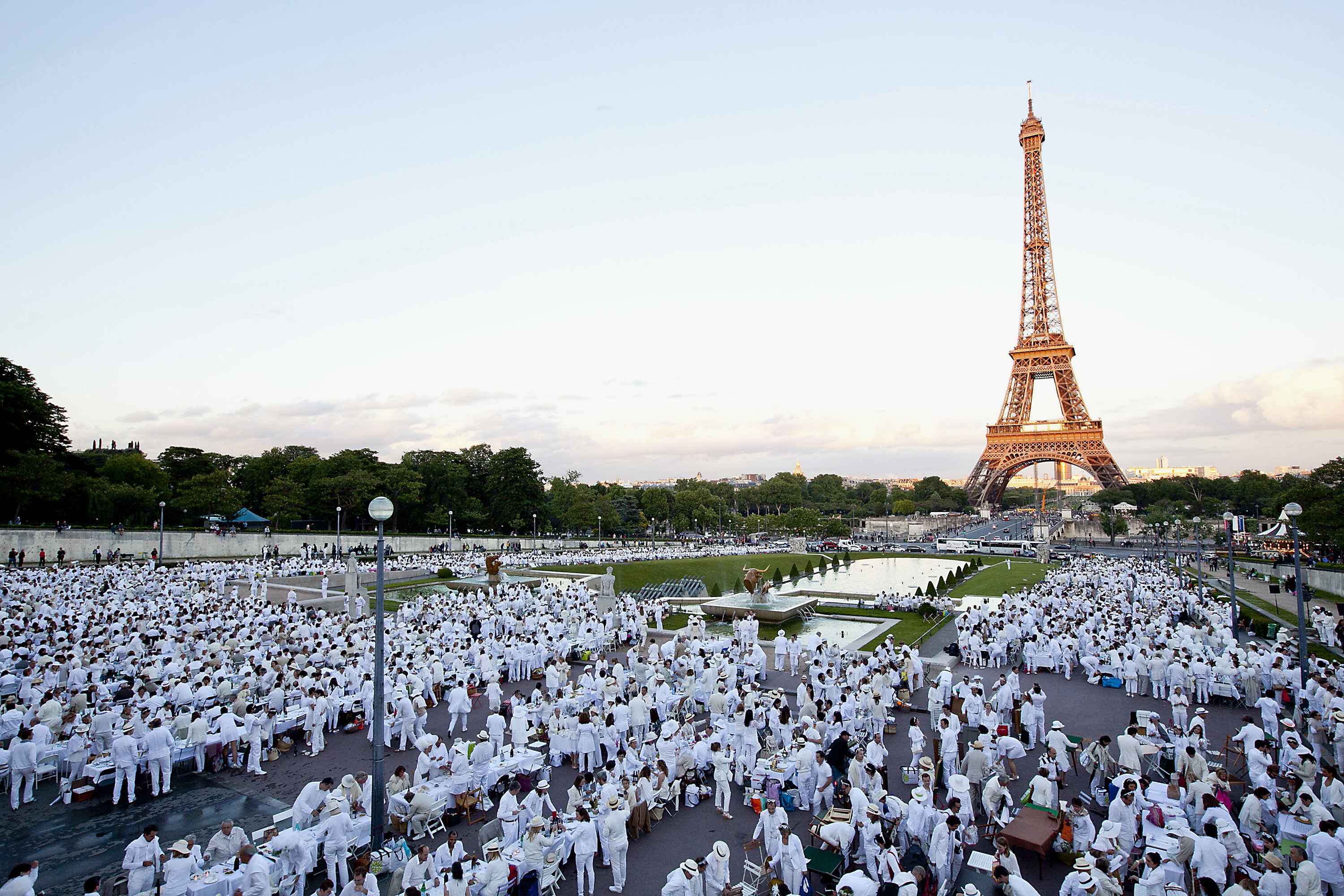 Le Dîner en Blanc es un evento hecho por amigos para amigos que sólo busca gozar de una experiencia única e irrepetible en alguno de los lugares más emblemáticos de su ciudad. Todos los invitados se visten completamente de blanco y llevan consigo su mesa, sillas, mantel, vajilla, copas y se encargan de preparar con especial esmero la cena que disfrutarán, enriqueciendo la diversidad gastronómica del evento. A nadie se atiende, ni se le cargan sus cosas, tampoco hay una zona especial; es una noche en que la gente misma es la protagonista y en la que se relacionan unos con otros en igualdad, sabiendo que están siendo parte de un logro mágico y colectivo.