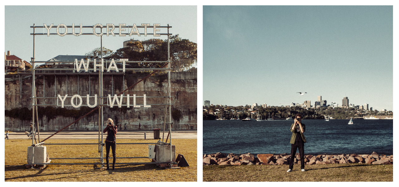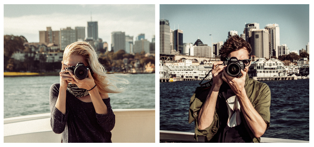 Básicamente son ellos dos, enfrentados por sus lentes, mostrando los distintos lugares del mundo en los que viajan, como por ejemplo Melbourne, Singapure, Berlin, Praga, etc…