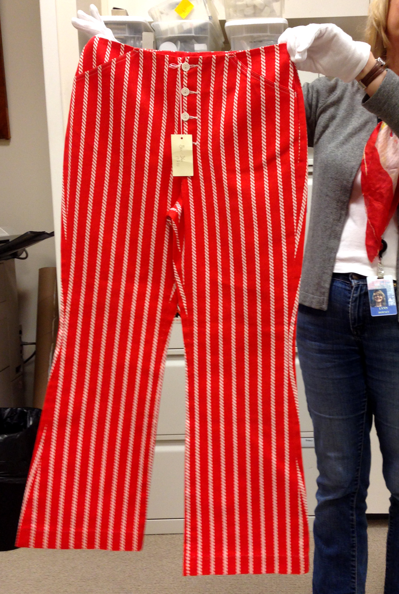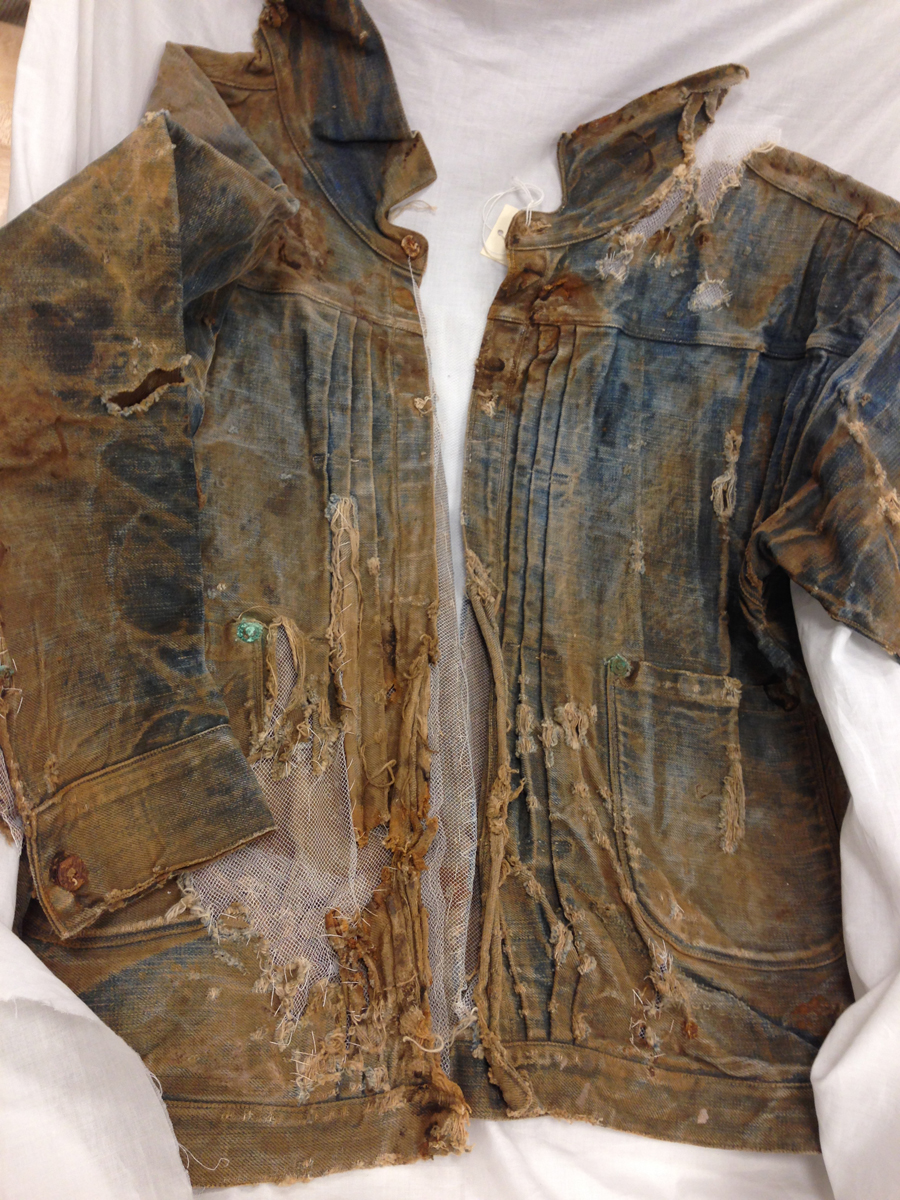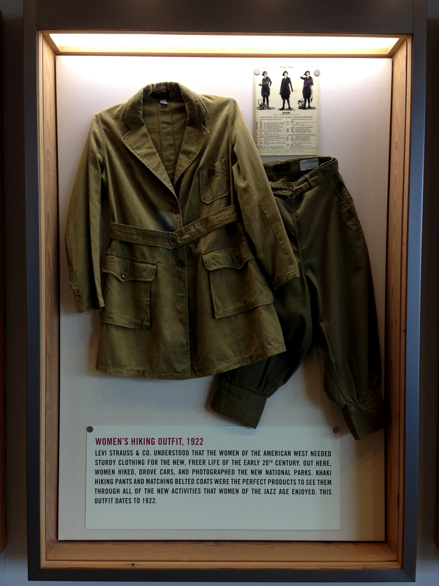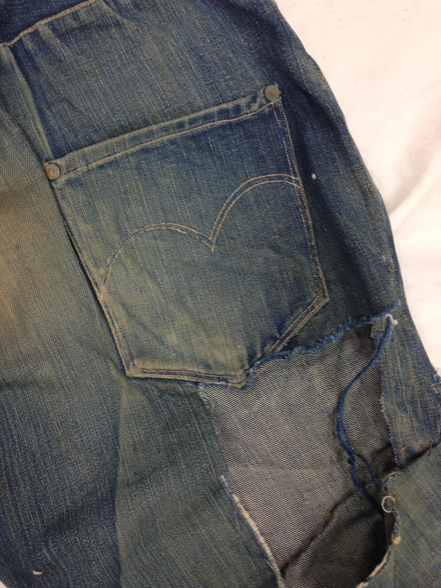 Las dos joyas de la corona del archivo son las primeras en salir de la bóveda. Dos jeans con casi 135 años de antigüedad se descubren entre paños de tela blanca, absolutamente impecables, tanto que, salvo por alguna rotura y el hecho de que al segundo par le falta una pierna (cortarlos era una práctica común entre los mineros, que usaban el género para emparchar sus nuevos pantalones) los dos pares de 501 parecen listos para usar. Traen un solo bolsillo en la parte trasera, ya que el doble bolsillo recién se incorporaría en 1901, bordado con la inconfundible doble costura curva de hilo, los patentados ribetes de cobre y una fortaleza y resistencia sorprendentes, logrando explicar por sí mismos cómo es que los 501 se conviertieron en la prenda más vendida de la historia.