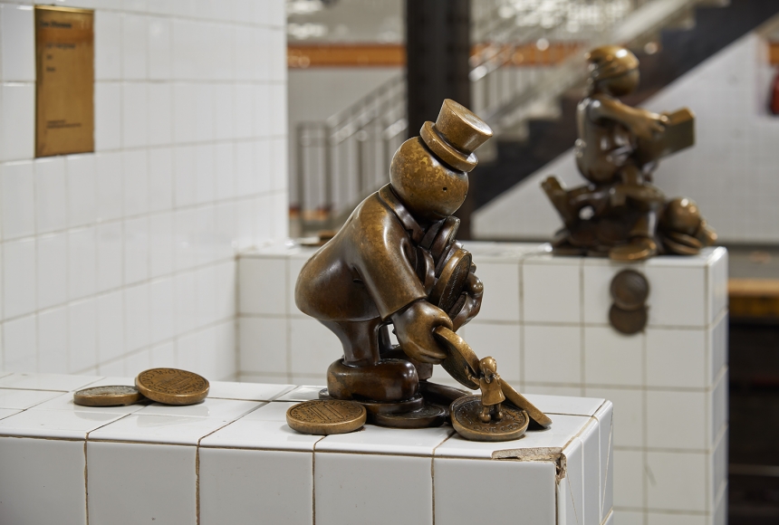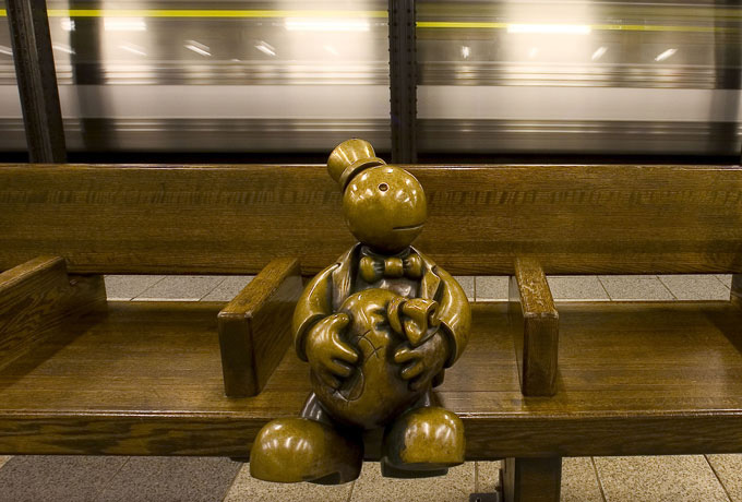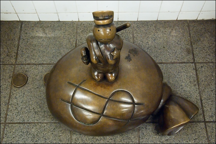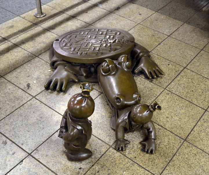 Creada por el escultor norteamericano Tom Otterness para decorar los recovecos de la estación, por donde pasan las líneas A, C, E y L, la muestra consiste en pequeñas esculturas de bronce de entre 10 y 30 centímetros que con pequeños animales y personajes típicos de la ciudad (policías, trabajadores, ricos y hasta el mítico cocodrilo que se dice que vive en las alcantarillas) en simpáticas escenas. El proyecto, finalizado en 2001, tomó alrededor de 10 años, con más de 100 piezas que relatan historias de vandalismo ingenuo y van sorprendiendo a los espectadores que tienen la suerte de encontrarlas.