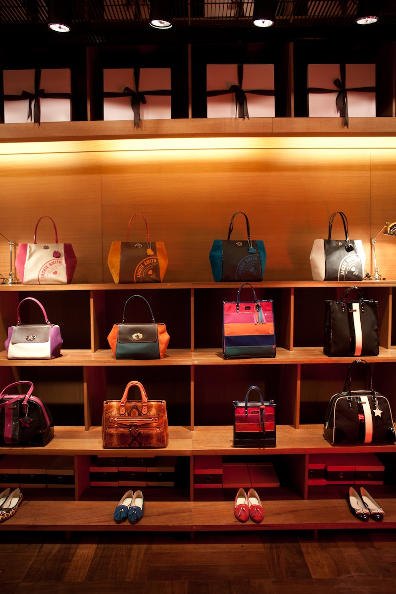 Es este ícono el que retoma Valeria Smith, la diseñadora al frente de Jackie Smith para su colección “Lolita”, una línea de Totes con forma de trapecio, confeccionados en cuero de puro grano natural combinadas y gamuzas de vibrantes colores a contratono, que llevan al frente estampas aplicadas en serigrafía diseñadas especialmente para darles un toque actual, caprichoso y divertido. Son ocho las variantes de tonos que van desde un neutral blanco y negro hasta un acalorado violeta y colorado, y que traen como accesorio los dos corazones que recordamos de esos anteojos de Lo.
