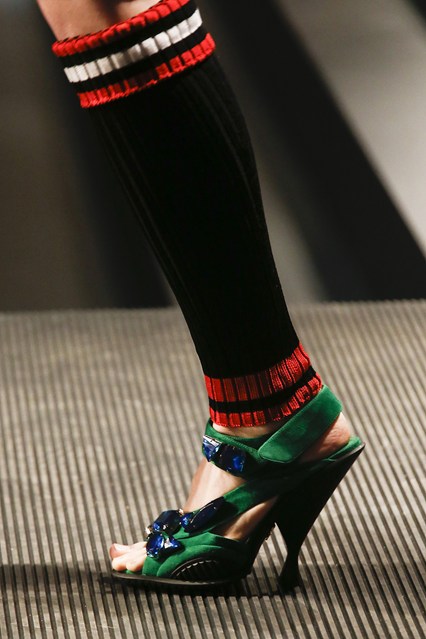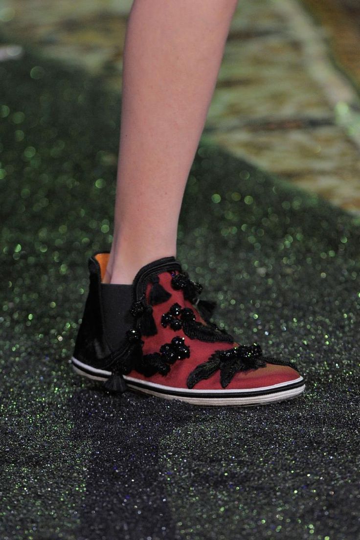 No pueden faltar los clásicos: Dior, con sus stilettos acordonados, Miu Miu, con sus clásicos apliques de piedras, Prada, que los combinó con medias futboleras, y las zapatillas más divertidas de Dries Van Noten. ¿Curiosamente ausente? Chanel, que combinó zapatos con punta redonda con las clásicas medias blancas de colegio, sin lograr terminar de brillar en la pasarela.