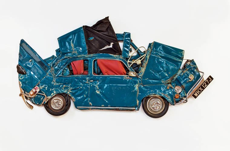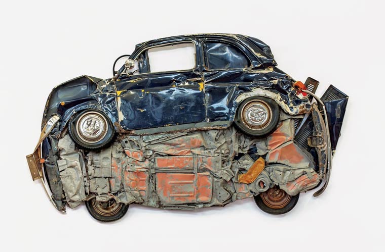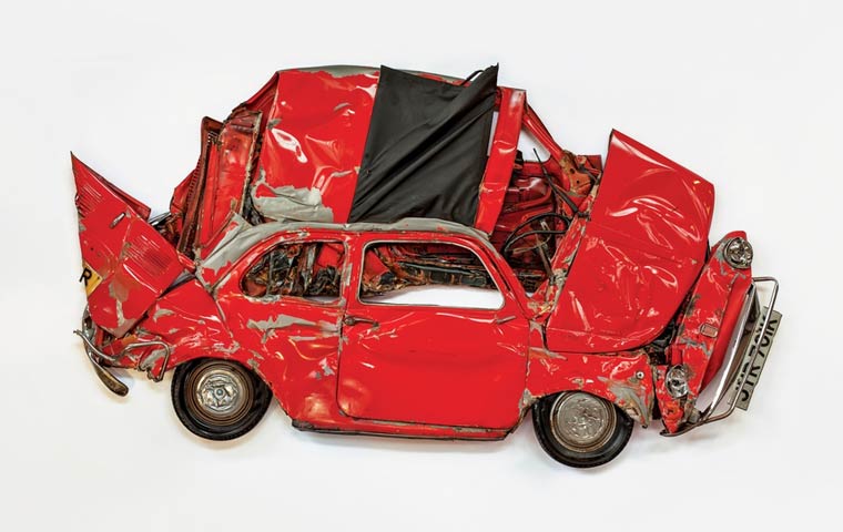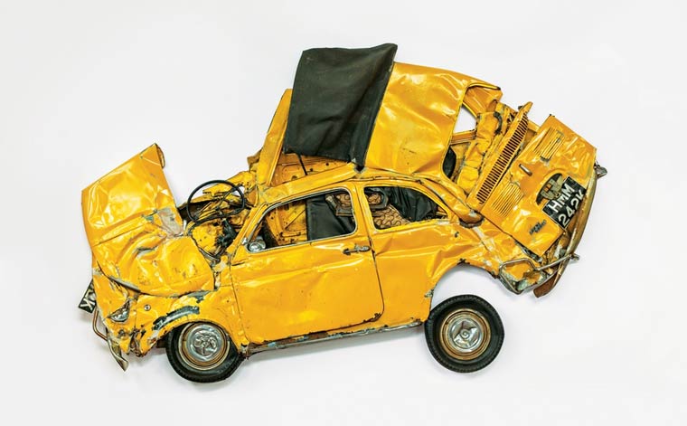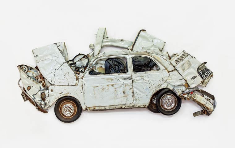 Imaginate la secuencia: Arad compró 6 Fiat Cinquecento antiguos y los llevó a un astillero en Groningen, y usando una aplanadora que normalmente funciona para realizar piezas para barcos, los acható. ¿El objetivo? probar su amor por estos pequeños bólidos italianos. “Los hice inmortales”, declara el artista, “y así van a vivir por siempre”.