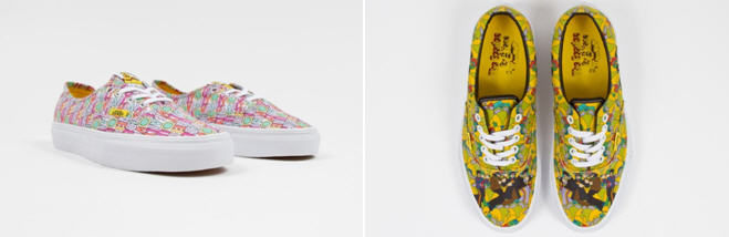 Yellow Submarine va a contar con tres distintos pares de zapatillas con diferentes colores y dibujos tomados directamente de la tapa del disco homónimo sacado por los Beatles allá por 1969. La re edición de la botita Sk8-Hi incluye los retratos de los Fab Four, mientras que la Era muestra el pintoresco jardín, y la Authentic agrega un collage con el mensaje “All You Need is Love”.