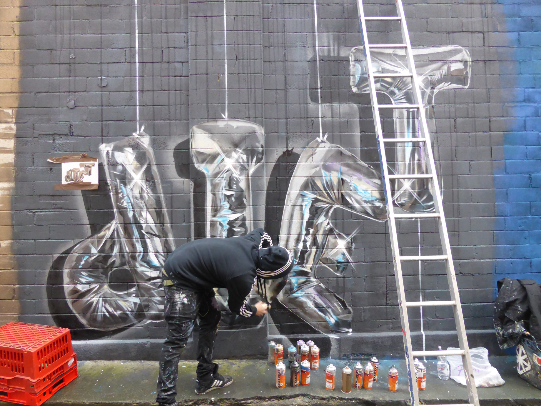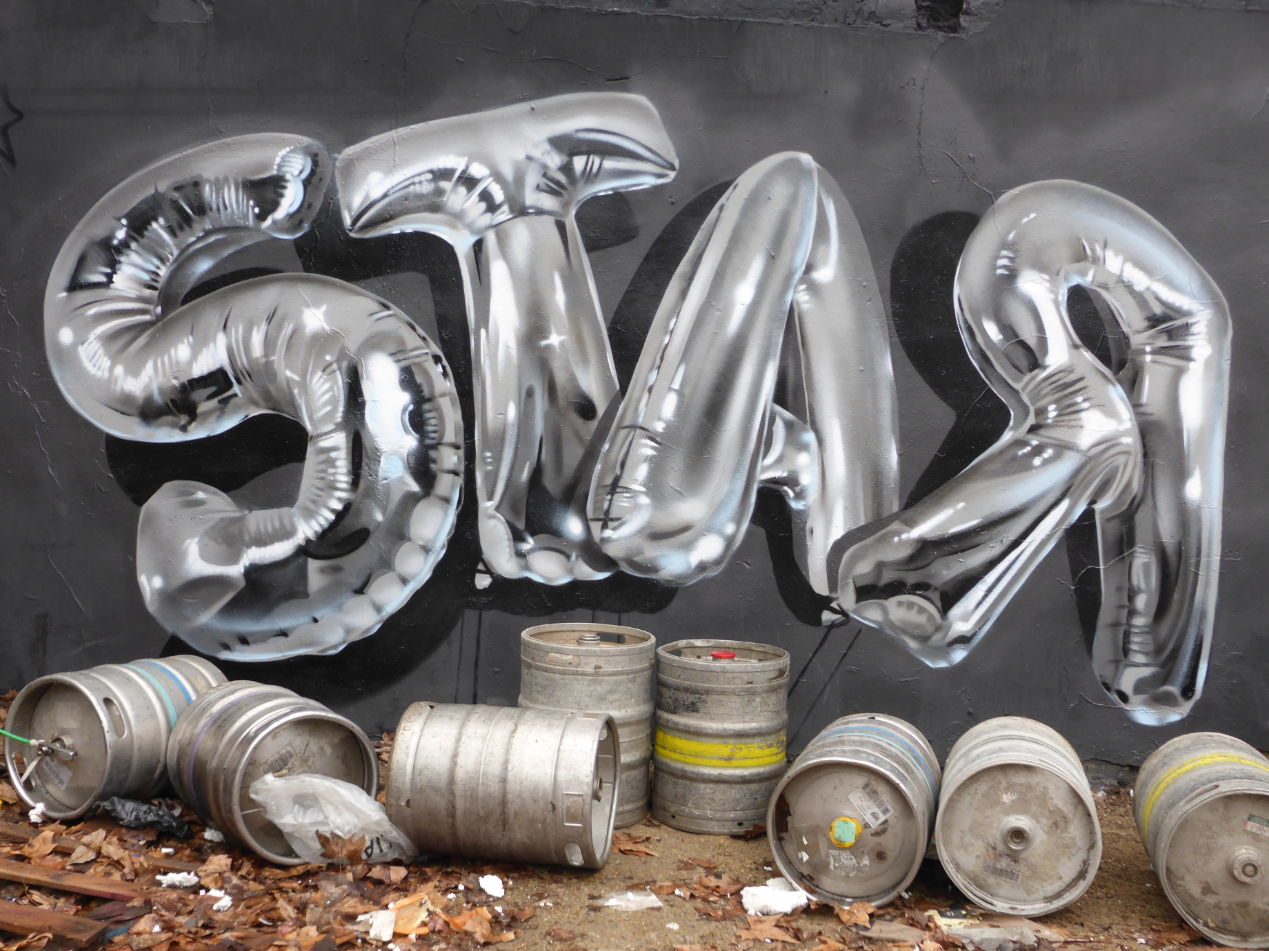 Fanakapan es un artista callejero inglés que descubrimos en nuestro último viaje por Londres. Como buena fanática de los globos, me sorprendió su capacidad de ilustrar estos últimos globos de helio metalizados con formas de letras que cada vez se ven mas, logrando con luces y reflejos darle tridimensionalidad a sus piezas.