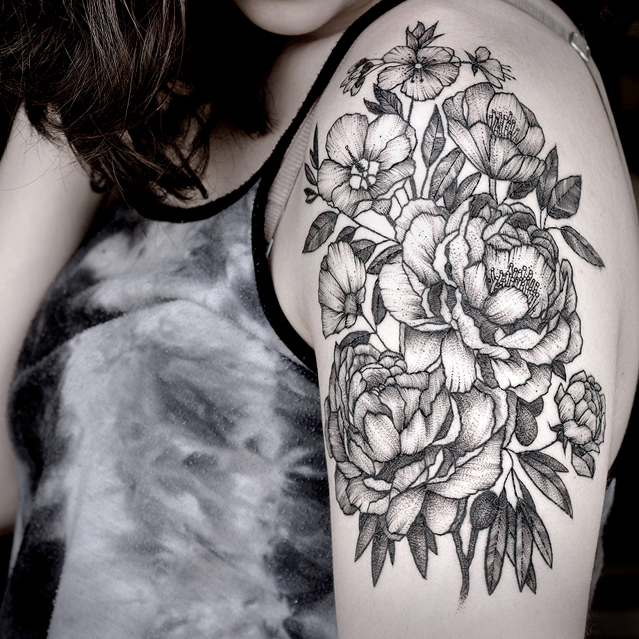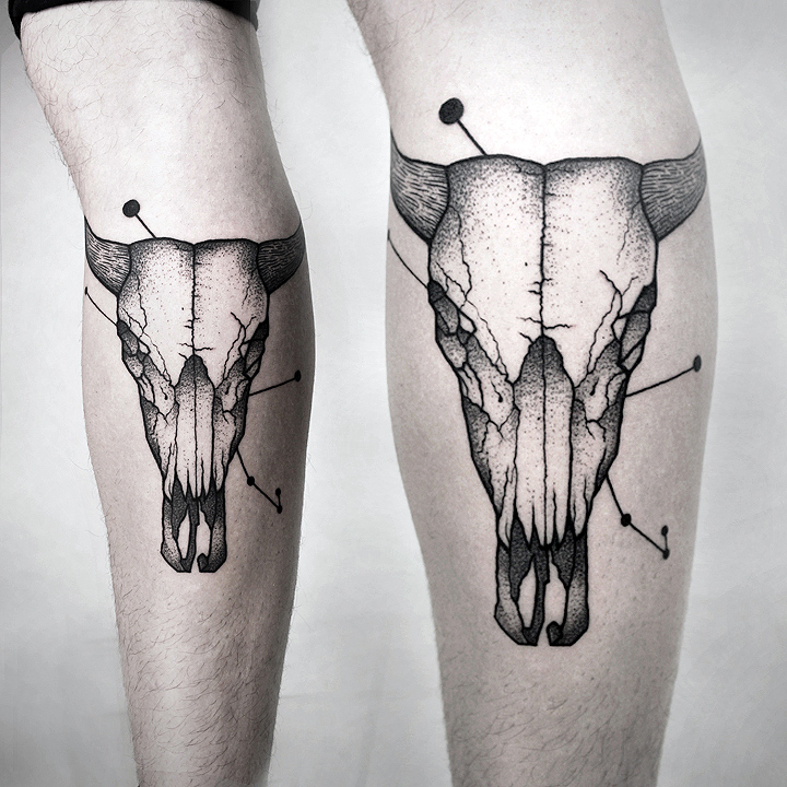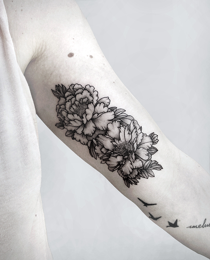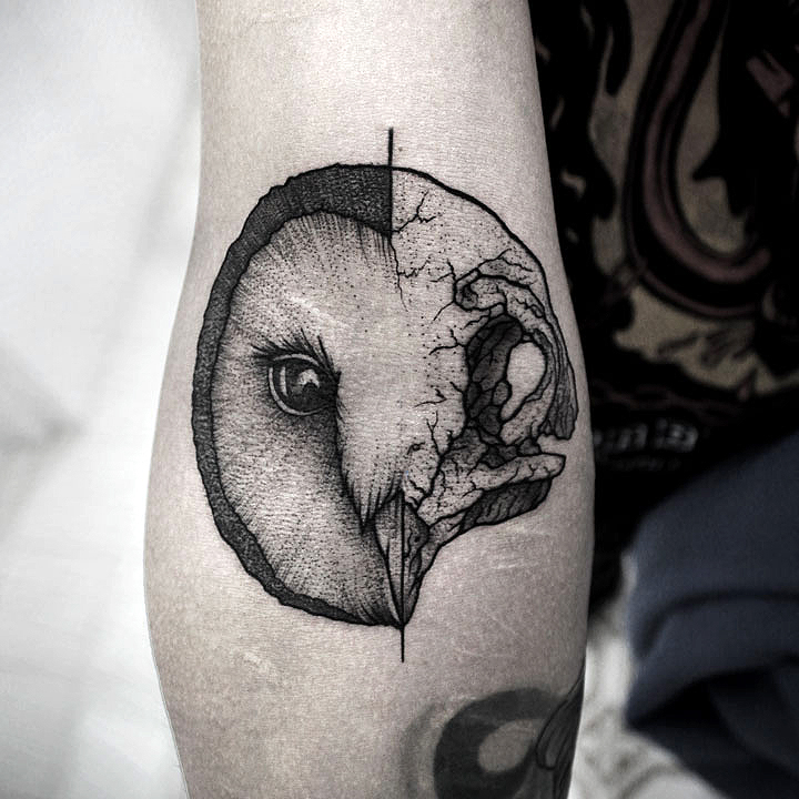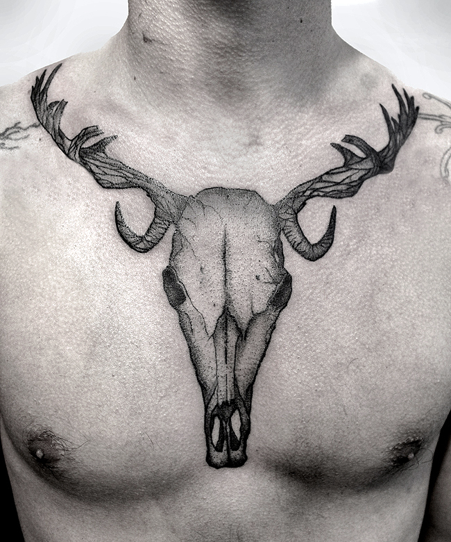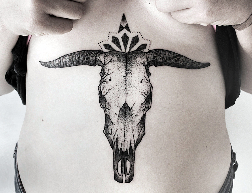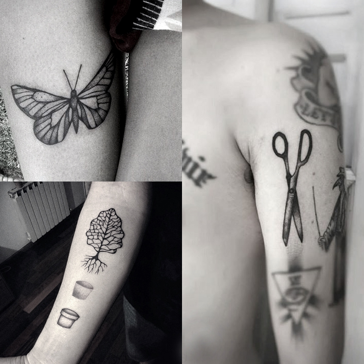 Sus motivos favoritos son la naturaleza (todo tipo de flores y plantas), cráneos y fósiles de animales y abstracciones geométricas, y son los tatuajes que mejor se le ven. Se inspira en todo lo que ve a su alrededor, además de tener una evidente fascinación por las ilustraciones de tipo científico enciclopédico, que logra reproducir con un estilo muy singular.