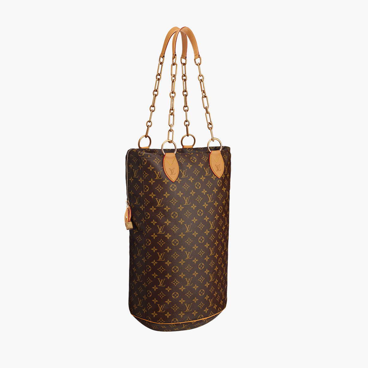 Acompañando su creación se sumaron tres totes en tamaños small, médium y large con cadenas que recuerdan a las que se usan para colgar los sacos en los gimnasios, y una valija que por separado trae un par de guantes adornados con la lona Monogram.
