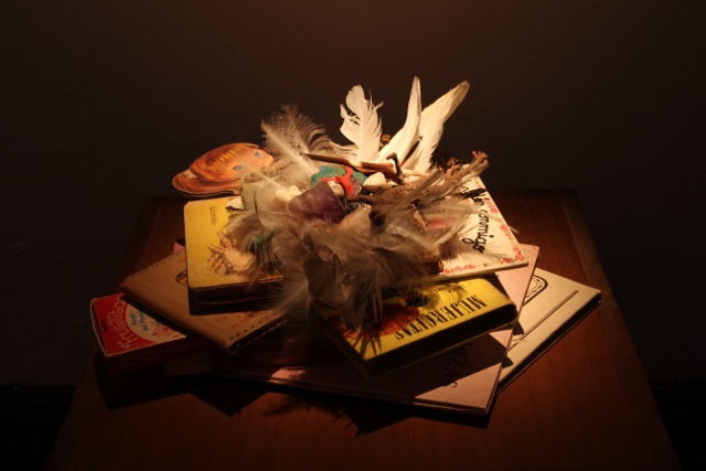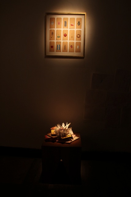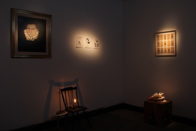 Obra visual, en 4 partes con objetos, cuadros, pinturas y video.