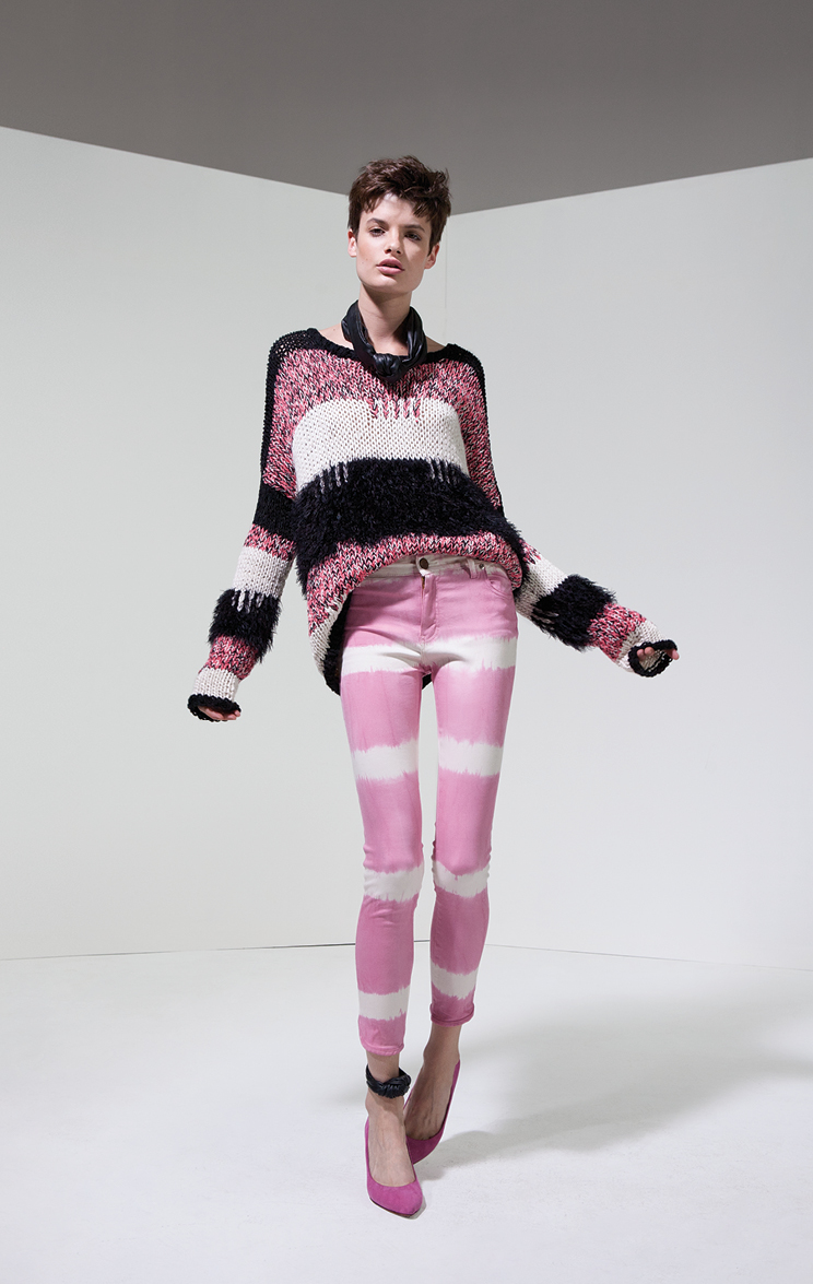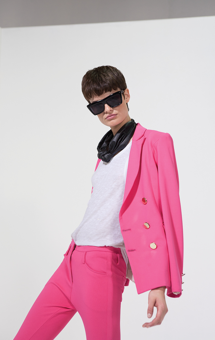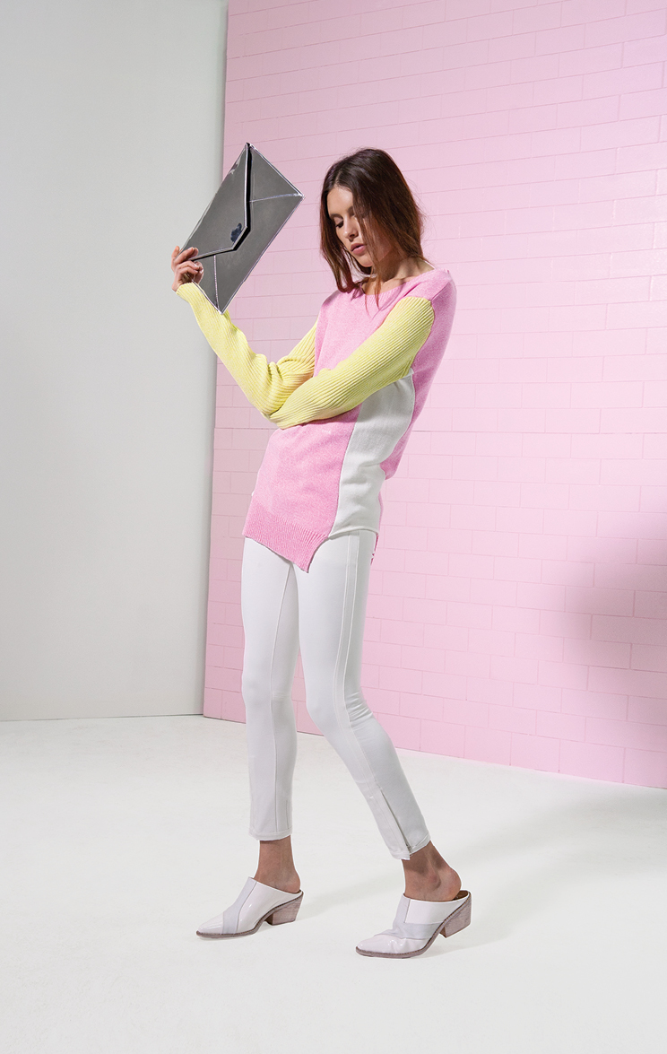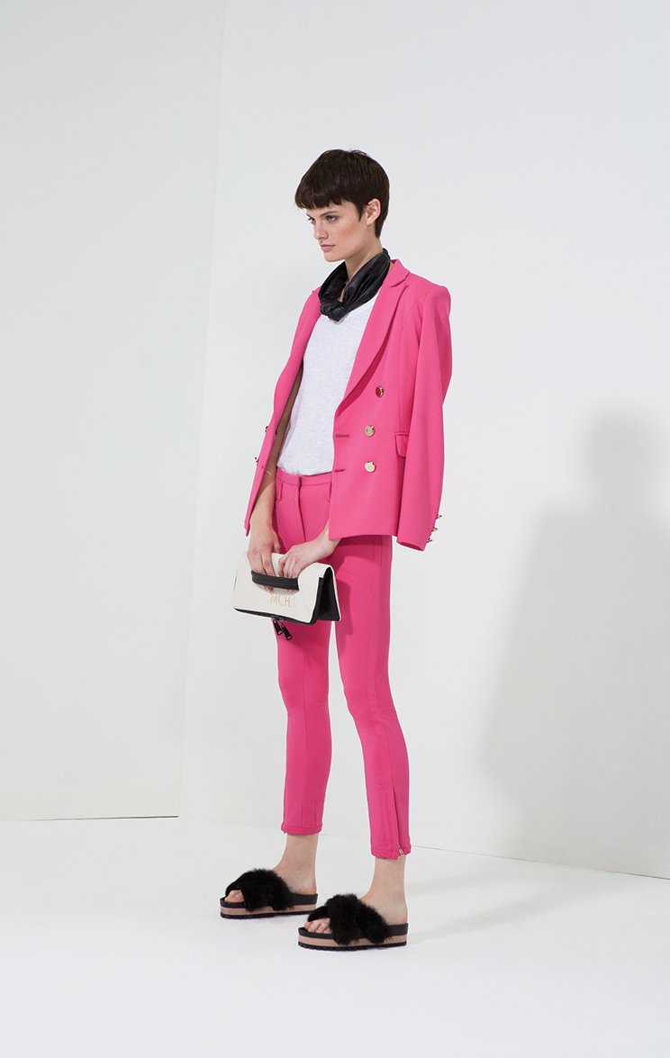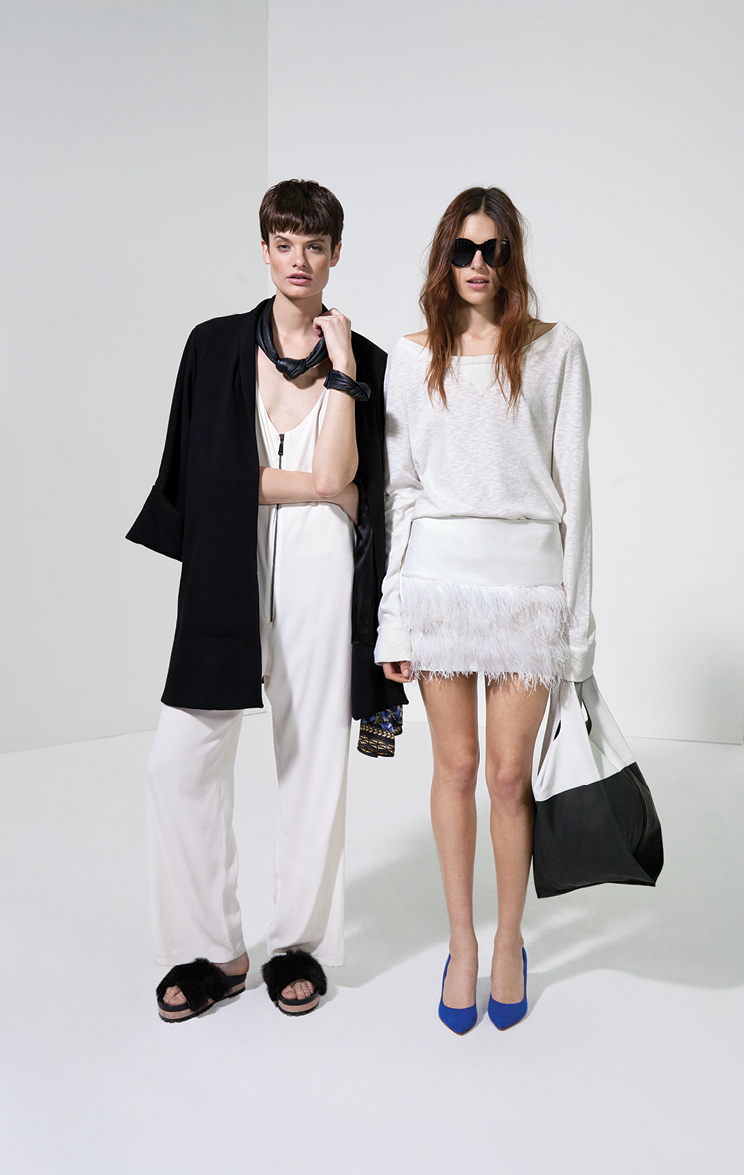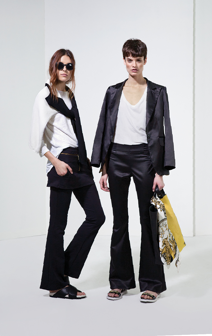 Al piso de madera, con alfombras de pelo negro, un enorme sillón y pared de accesorios envidiable, se le acoplan eternos percheros con la presentación de una línea que busca que la mujer Cher se sienta como en casa. Las siluetas son simples, con géneros nobles y acentos de colores para el día: tonos vibrantes como el fucsia y el afamado naranja que se complementan con el blanco, negro, azul y verde militar para looks cálidos y relajados.