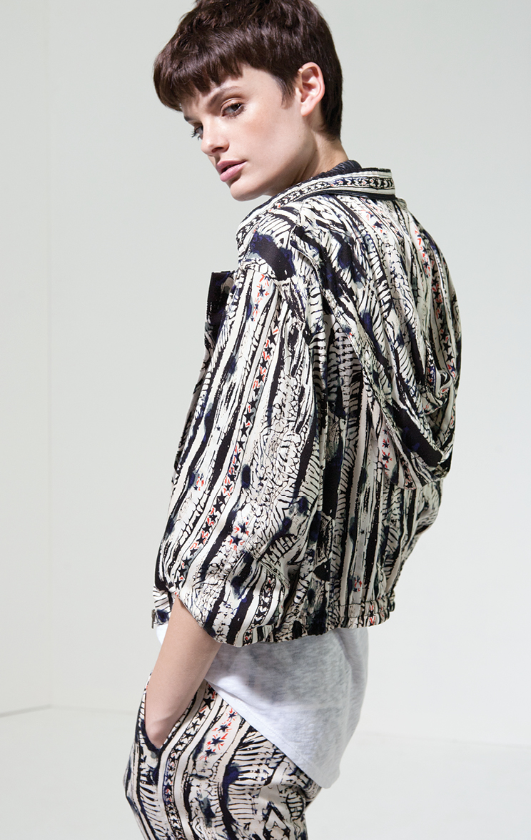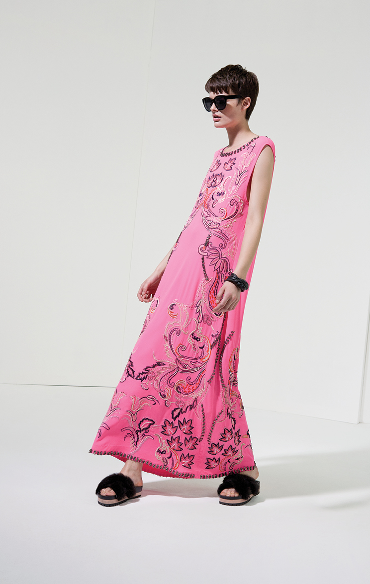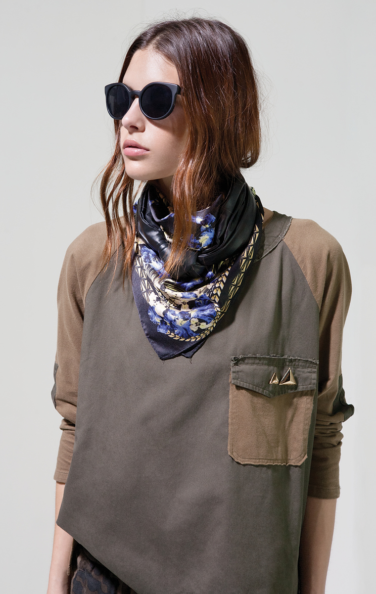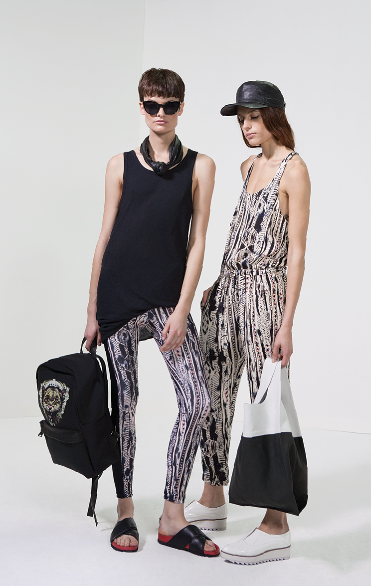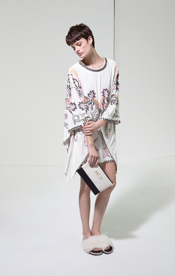 Por la noche la colección ruge con bordados en vestidos de seda y abrigos ligeros, estampas intrincadas en pañuelos y monoprendas y encaje y transparencias floreadas en faldas soñadas. Perdiéndole el miedo al total look, la propuesta incluye pantalones que se combinan con camisas estampadas en estampas violentas y hasta camuflados militares.
