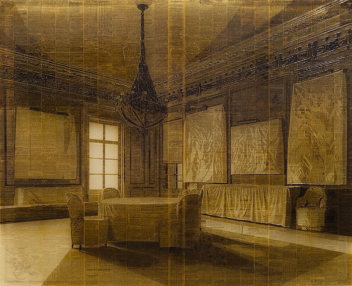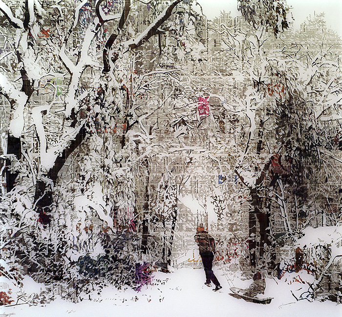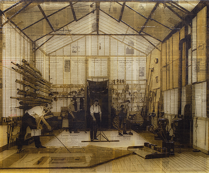 Su obra tiene un tratamiento especial y esto genera un resultado distinto: el tratamiento con barniz, transforma las hojas en algo bidimensional, y parecen varias capas superpuestas. El resultado de este proceso creativo son unos collages que se construyen por medio de la superposición y la yuxtaposición de distintas hojas de diarios. El tamaño el color son siempre diferentes y también el espesor de cada obra.