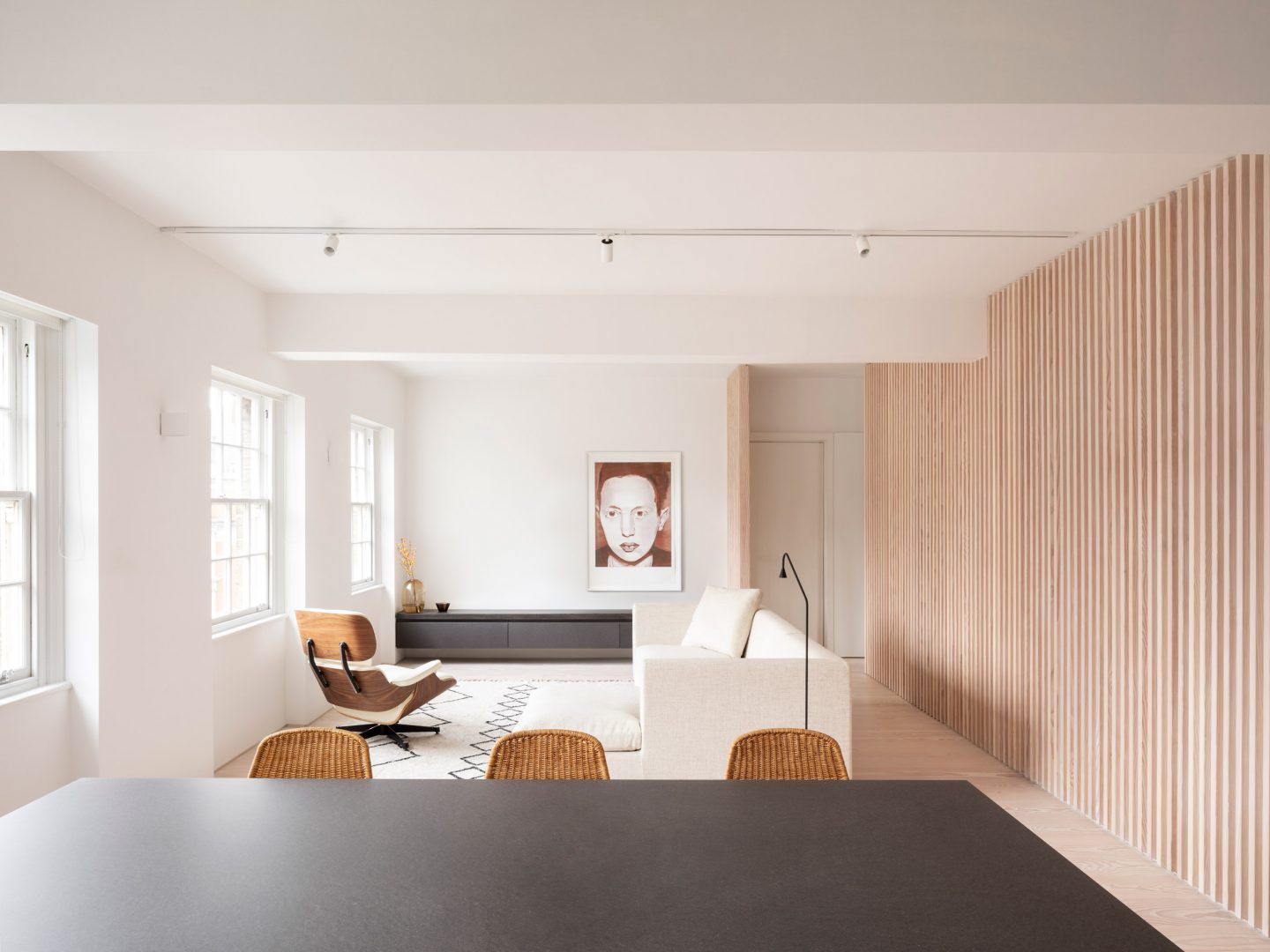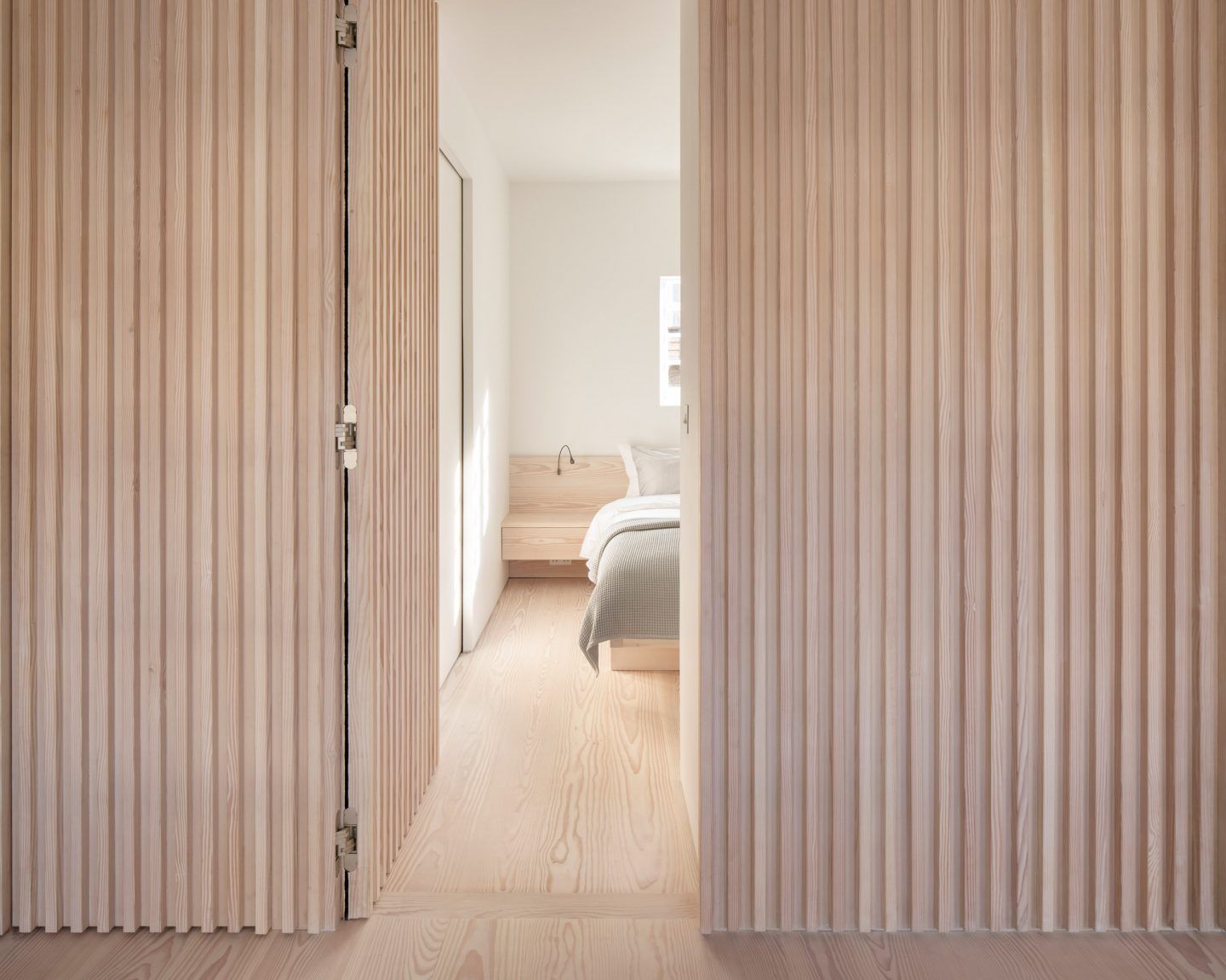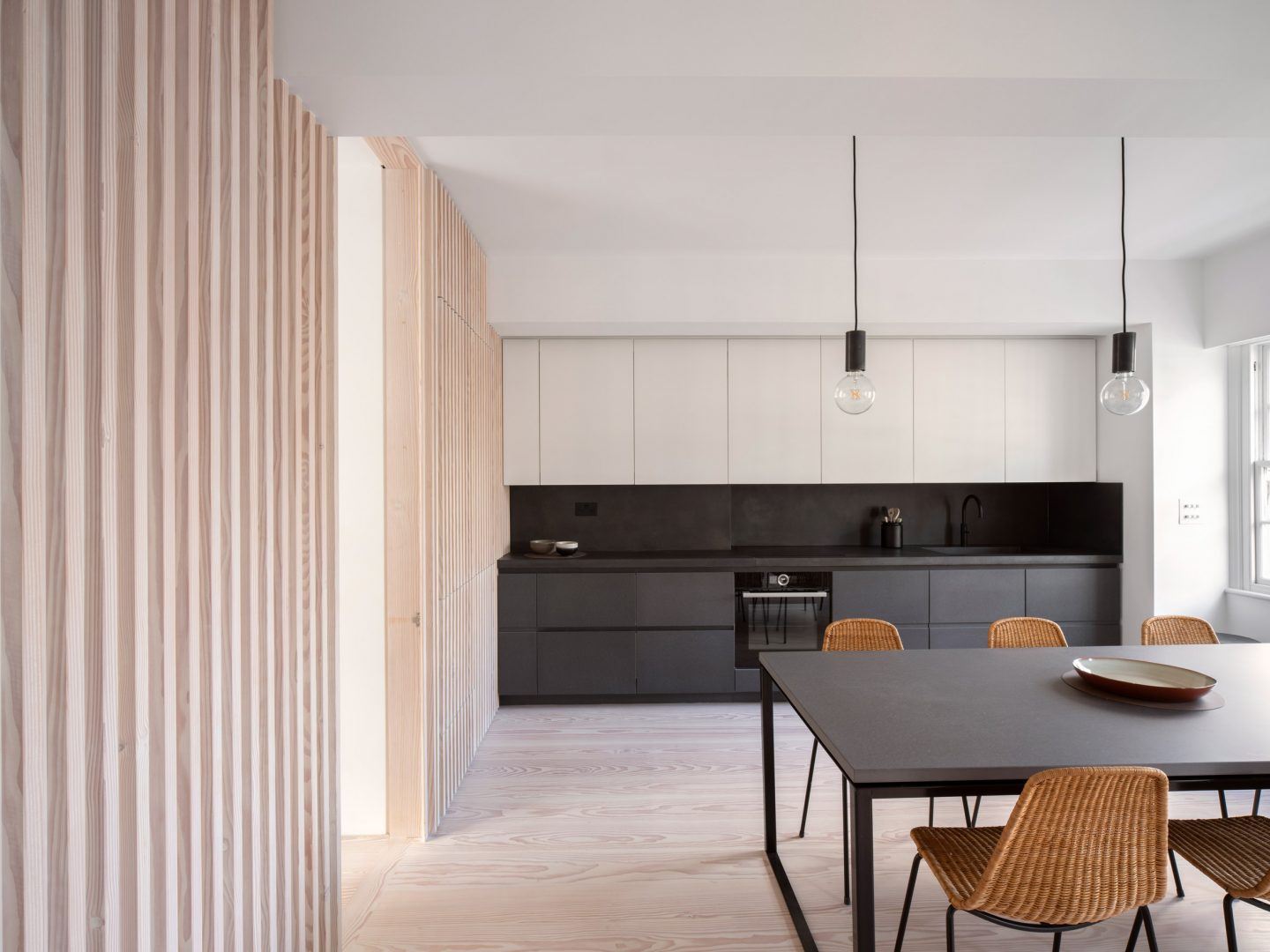 Proctor & Shaw, firma con sede en Londres, ha completado una remozada pero elegante renovación de un apartamento de 75 metros cuadrados en el centro de Londres. La característica definitoria de “Marylebone Apartment” es su tabique de madera de abeto Douglas, que separa con elegancia las zonas de estar y dormir.