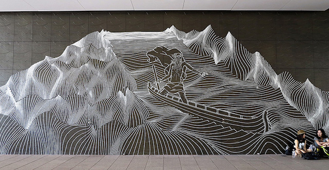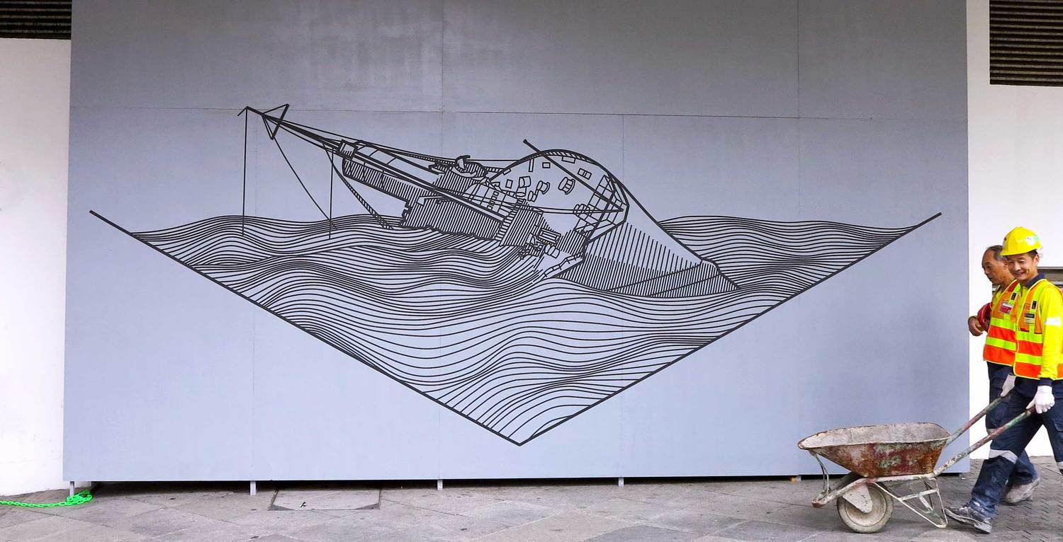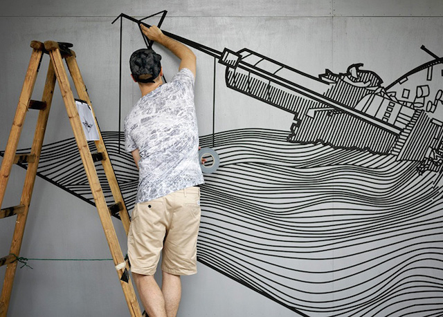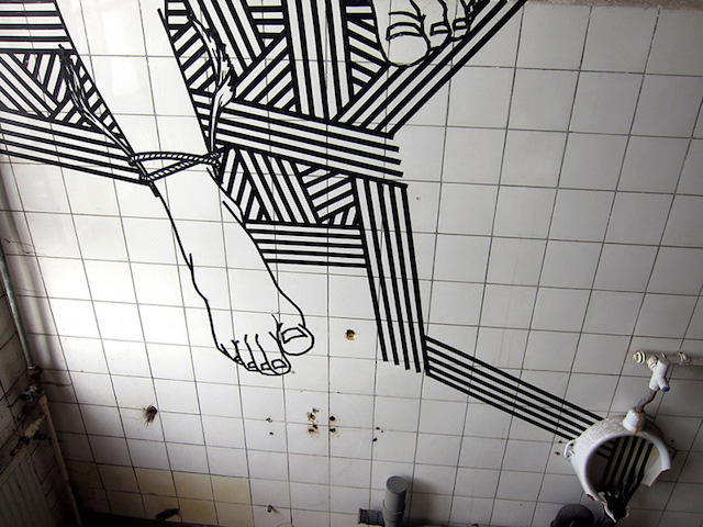 Buff Diss es un artista callejero australiano, que en las paredes de Melbourne va dejando su marca con cinta de enmascarar. Las creaciones, con líneas precisas y una tridimensionalidad impresionante, no tienennada que envidiarle a las obras realizadas con stencils o aerosoles.