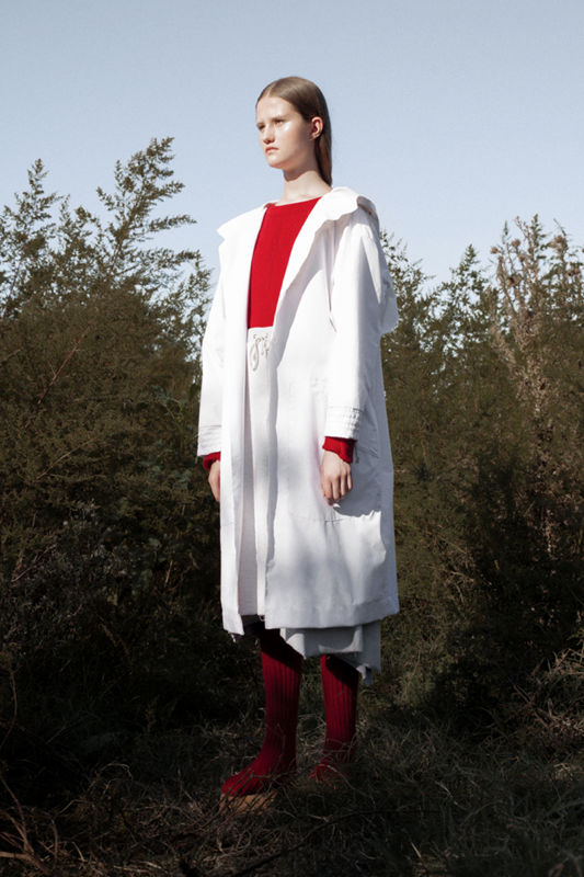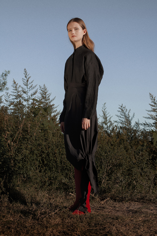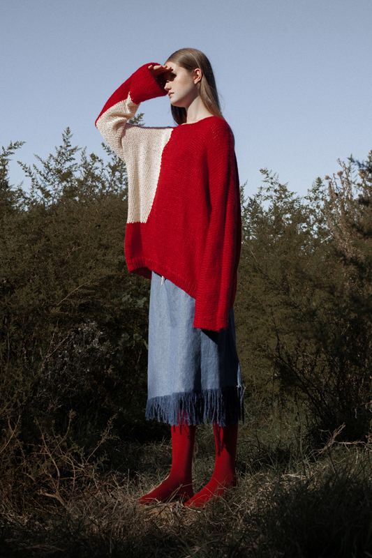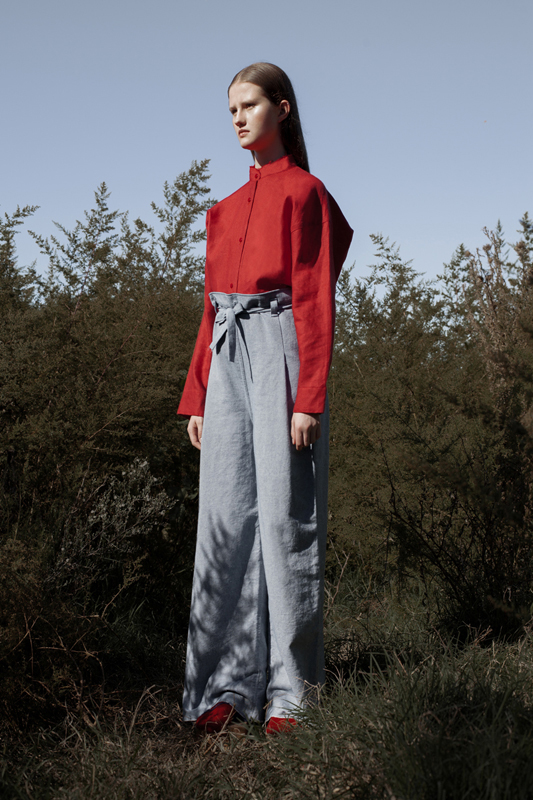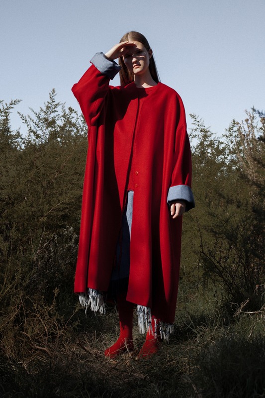 Lena: Por lo general no boceto. Si bien siempre existe una idea o un concepto por detrás del diseño de una prenda o una colección, en mi caso, todo fluye mejor al entrar en contacto con el papel para desarrollar el molde. Esto nunca queda como algo definitivo, sino que va mutando con la prueba de la tela sobre el cuerpo, donde factores como silueta, pesos visuales, color y superficie toman real relevancia.
