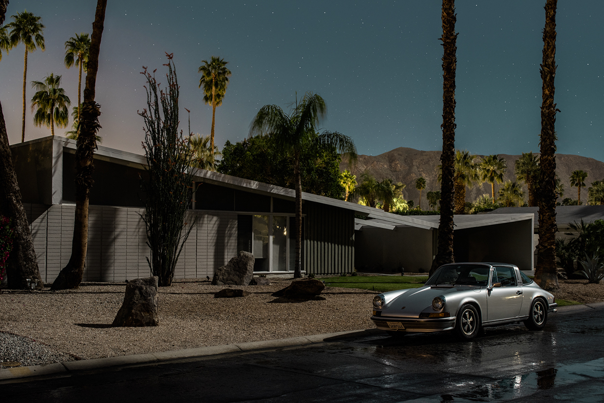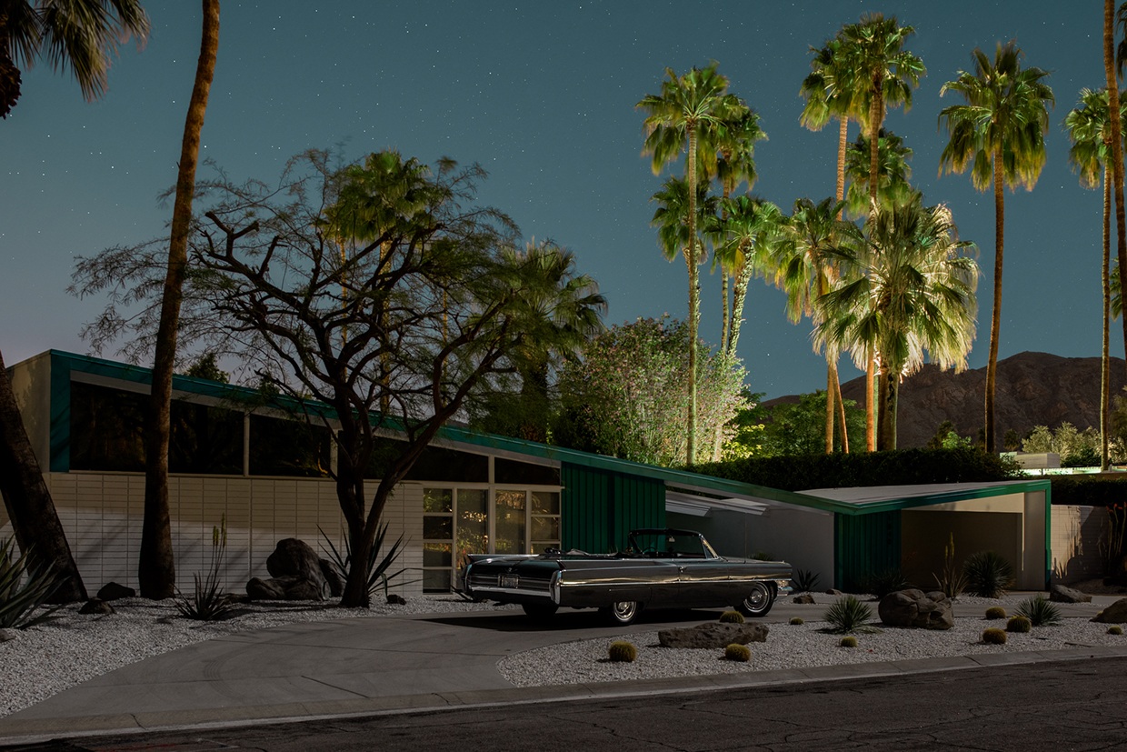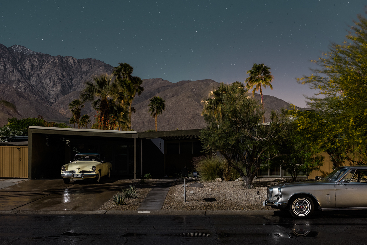 Últimamente su trabajo esta solamente iluminado por la luz de la luna, y en ellas combina la arquitectura, los autos y las montañas de Palm Springs, California.