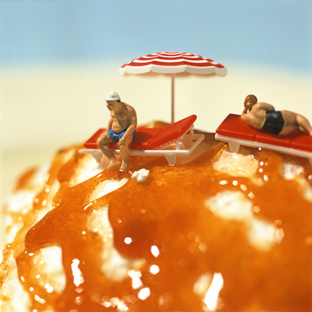 Con una pila de comida y mucha, pero mucha paciencia, los fotógrafos Pierre Javelle y Akiko Ida crearon una serie de divertidos dioramas que nos muestran a una serie de personajes en miniatura haciendo su vida en un mundo comestible. Combinando “mini” de miniatura, y mima (rico, en francés), surge MINIMIAM, un proyecto que arrancó en el 2002 y surge a partir de la labor de la pareja como fotógrafos culinarios.