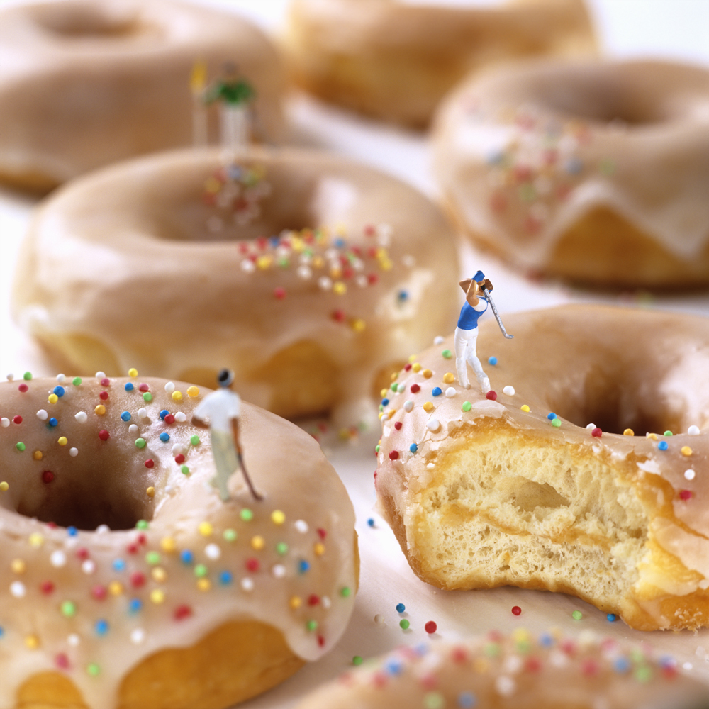 Las figuras que utilizan tienen una escala de 1/87 y son tomadas de sets de trenes, ideales para la exploración de cremas, donas y verduras en general. Conocé más de su trabajo en la web.