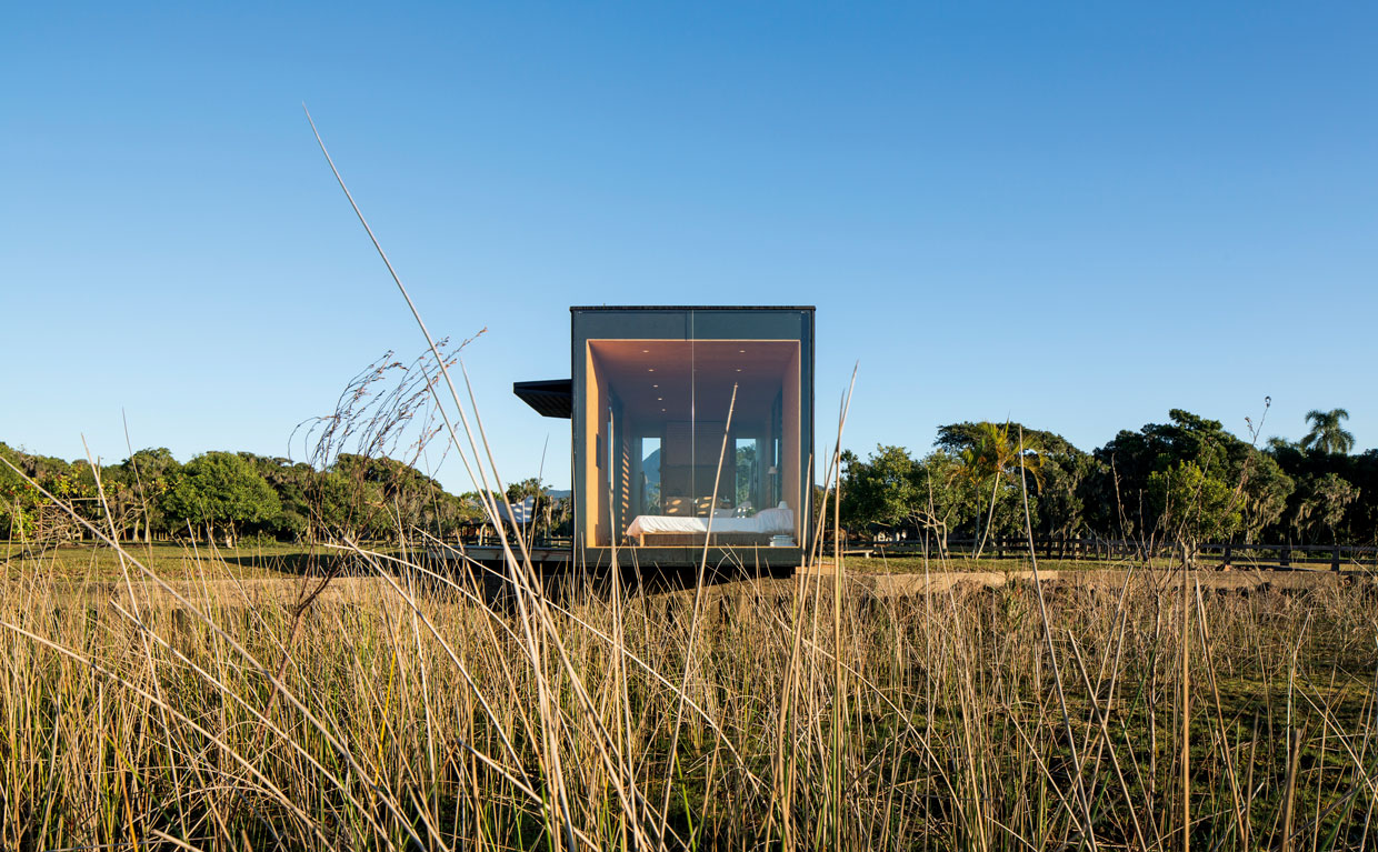 Todo arranca con un módulo mínimo, a partir del cual podemos agregar diferentes piezas prefabricadas con estructura de acero y acabados a elección, casi como piezas de un rompecabezas. Dependiendo de la composición de los módulos encontramos diferentes posibilidades, que van desde una cabaña de fin de semana compacta hasta estructuras tan elaboradas como un hotel.