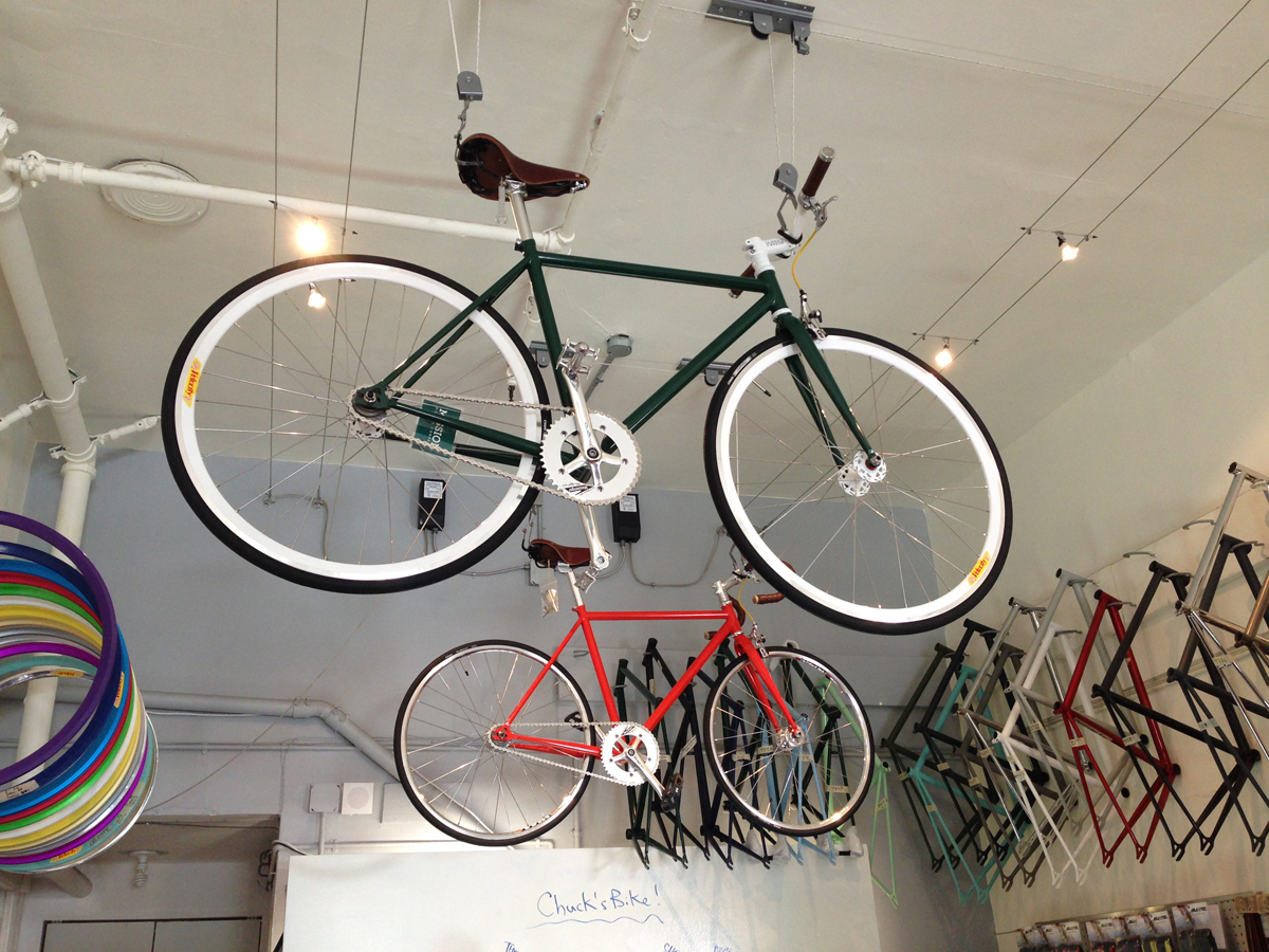 “Bicycles made for city riding. Custom built. One at a time.” es el slogan de la marca, y el custom se respira por donde mires. Para arrancar, se puede elegir entre 5 tamaños de cuadros, piñon freewheel o fixed, 3 tipos de manubrios y componentes standard hasta los más pro que tu bolsillo pueda costear. Cuando muy ingenuamente preguntamos de qué colores se podían encargar, nos respondieron con una sonrisa y un catálogo con alrededor de 100 opciones para elegir entre opacos, flúo, reflectivos y cuantos tonos se te puedan ocurrir. Arrancan en US$799.