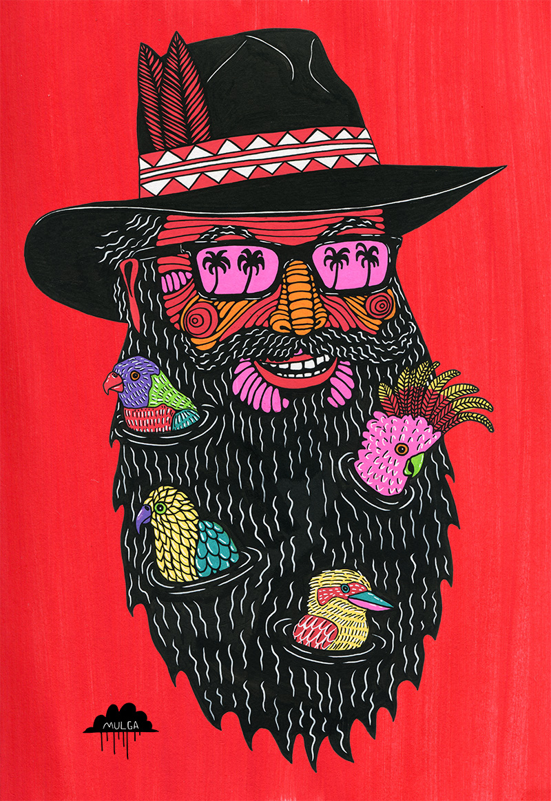 Joel Moore es Mulga. Un gran artista que además es australiano . Y usando términos coloquiales, “la rompe”. Arte psicodélico y caleidoscópico. Una alucinación total sin drogas.