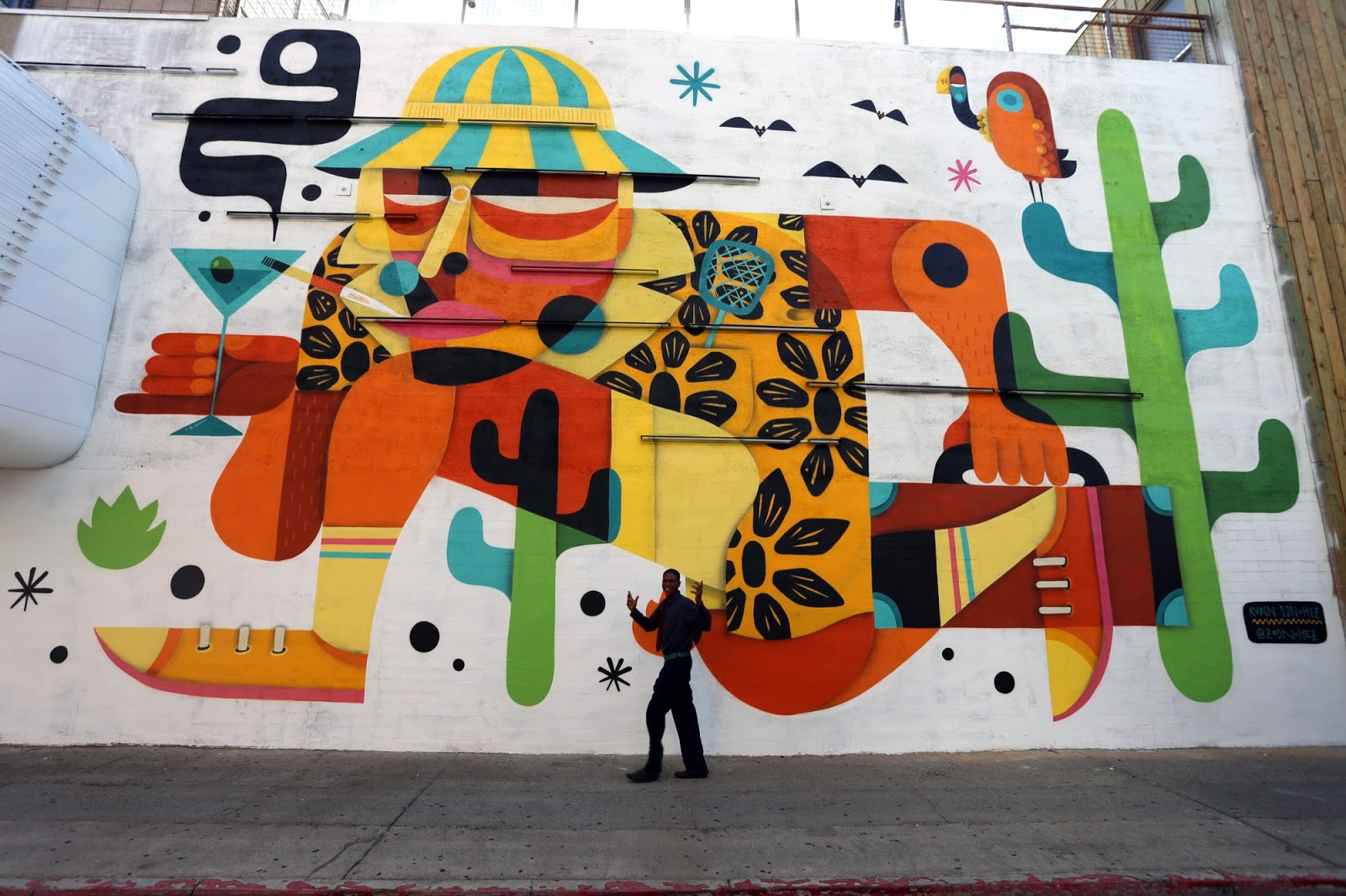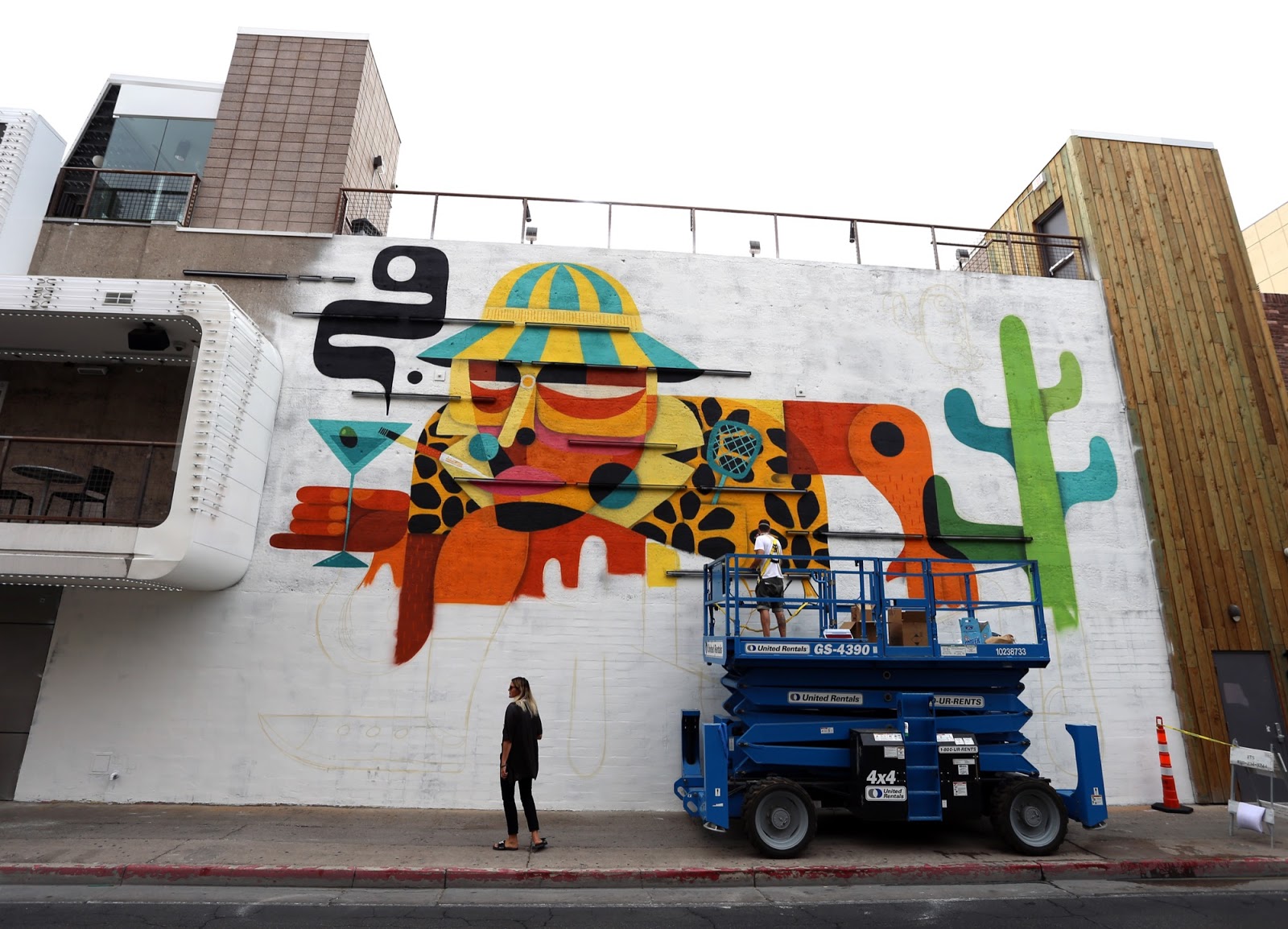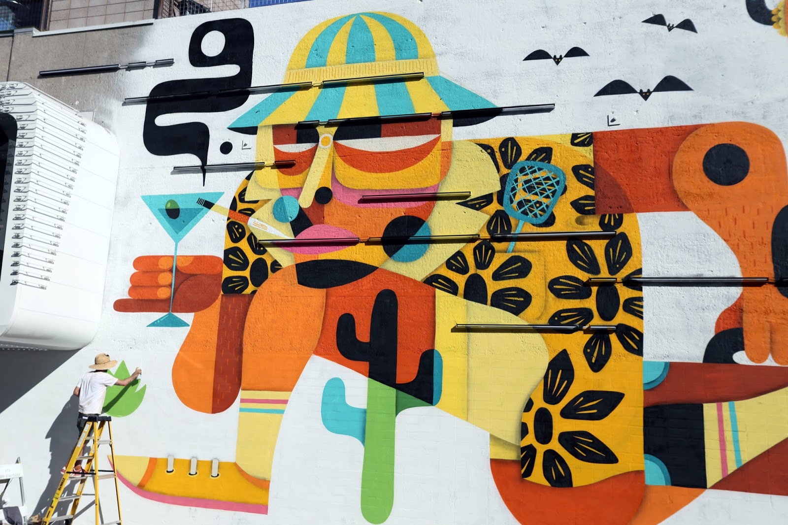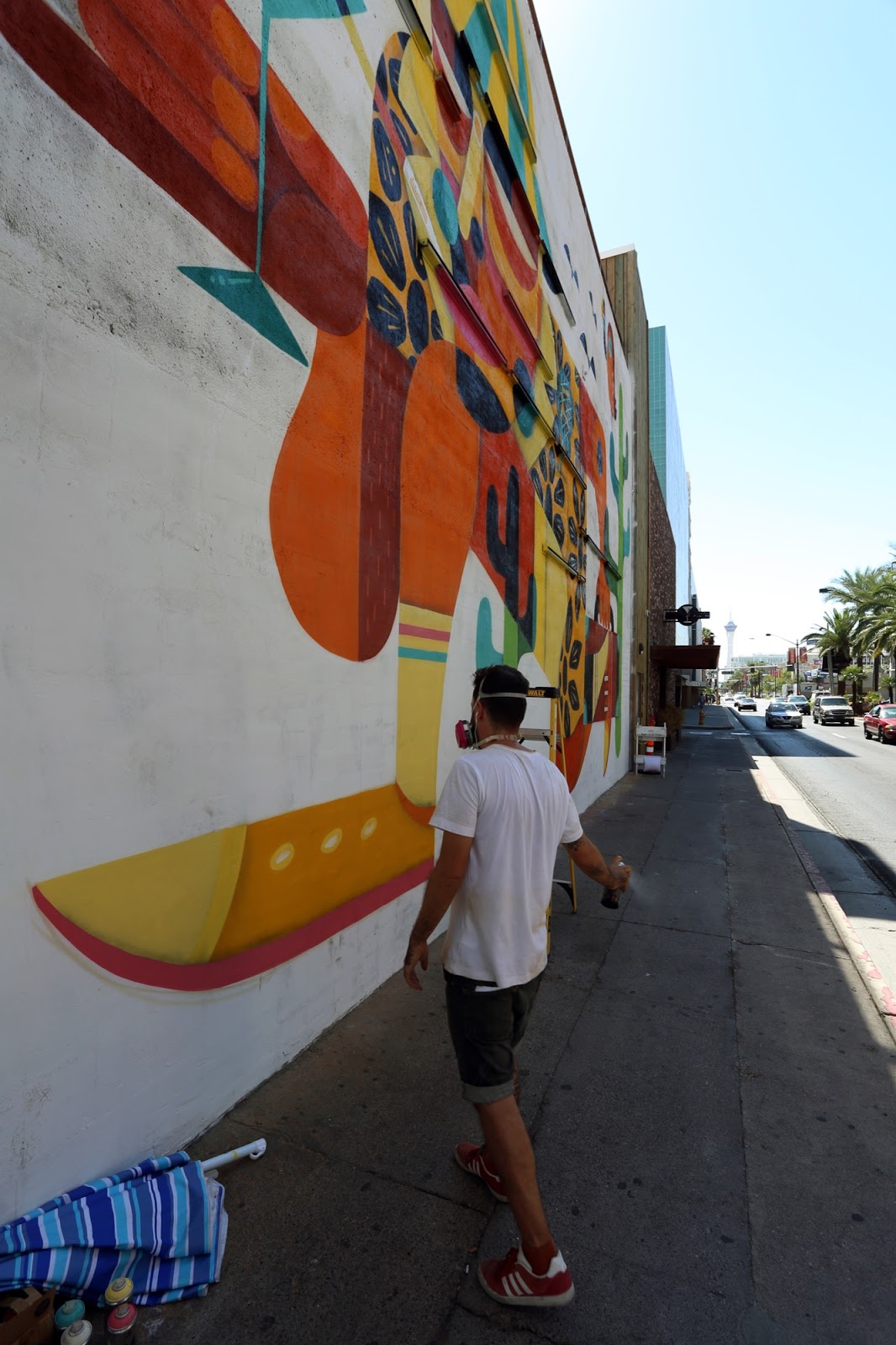 Fue invitado a Las Vegas por JustKids para colaborar en un mural en la parte lateral de un edificio.