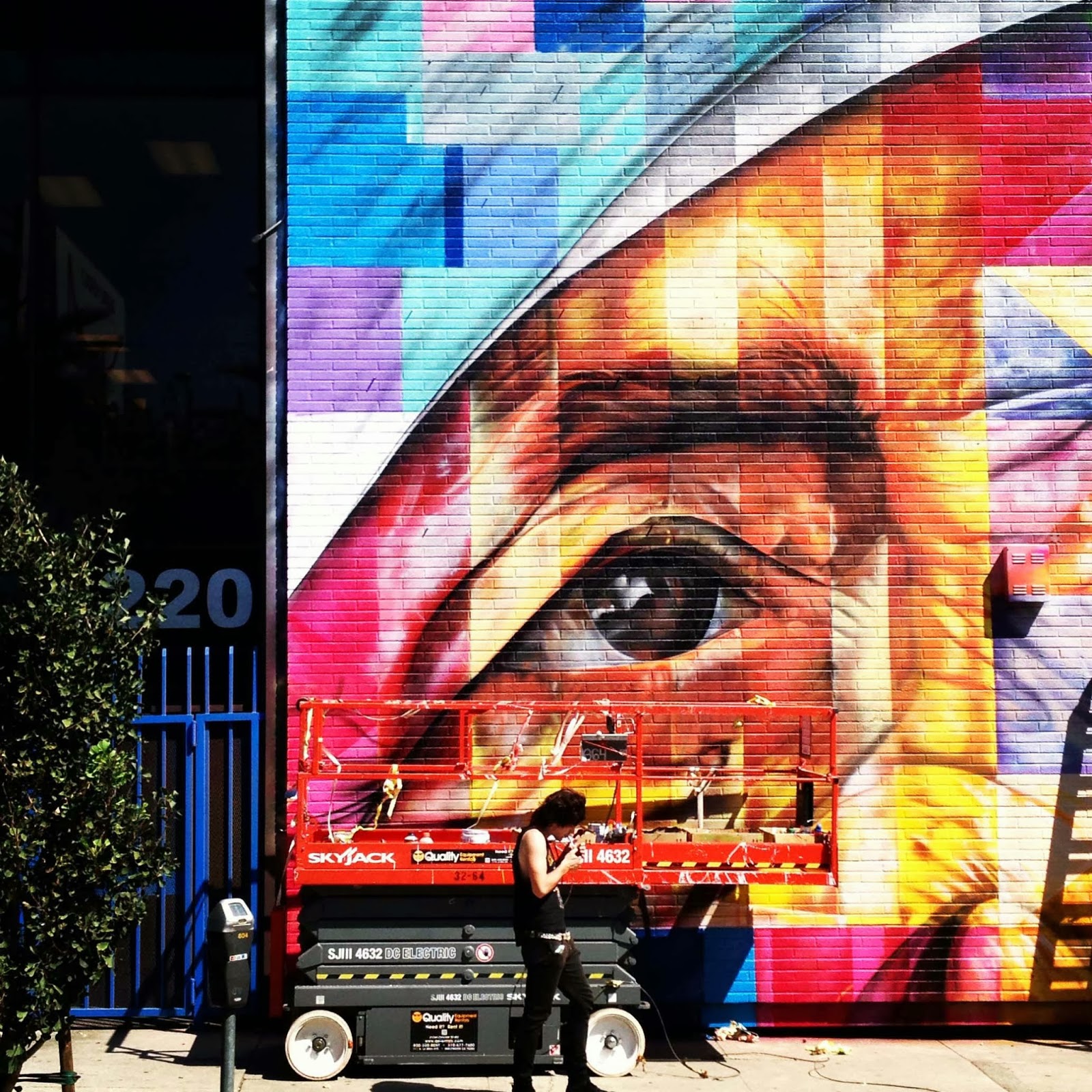 El artista brasilero Eduardo Kobra acaba de terminar su ultimo mural en una gran pared de Los Angeles, California.