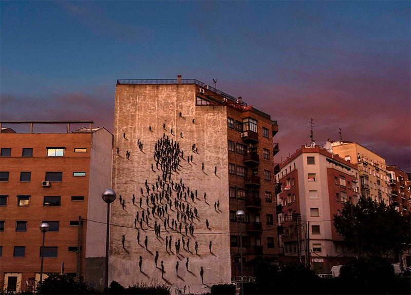 El artista visual SUSO33creo este gigantesco mural en la espalda de un edificio en Madrid, España.