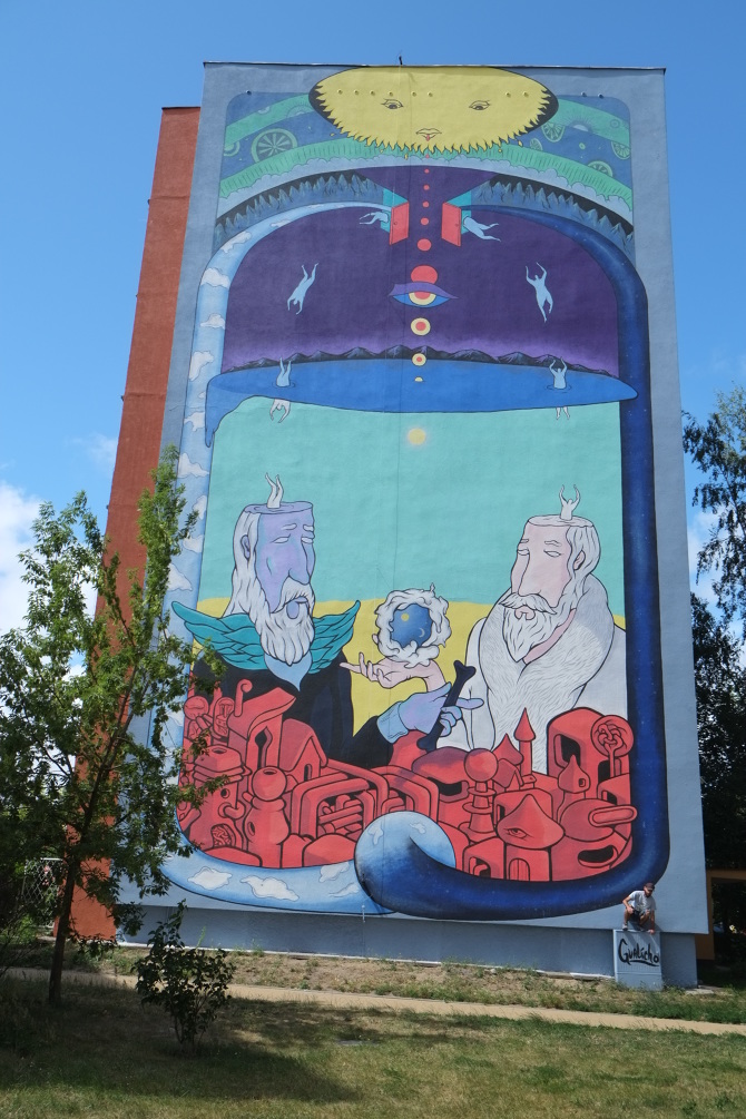 Con su arte crea nuevos mundos interconectando formas orgánicas y mecánicas, que resultan en ciudades retro futuristas y personajes ambiguos, que reflejan los arquetipos y conflictos de los seres humanos.