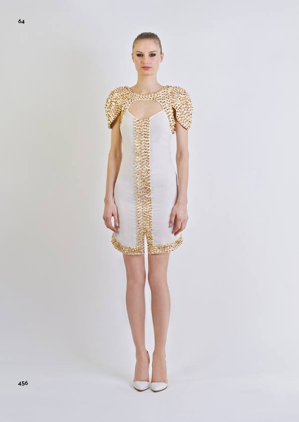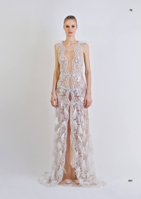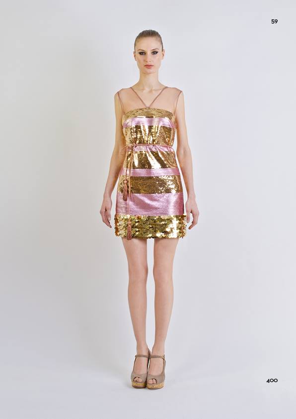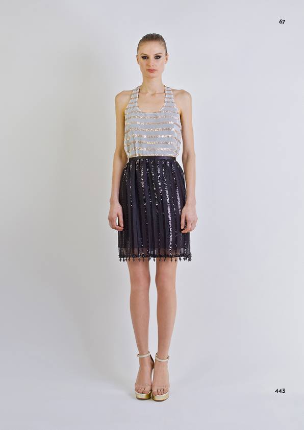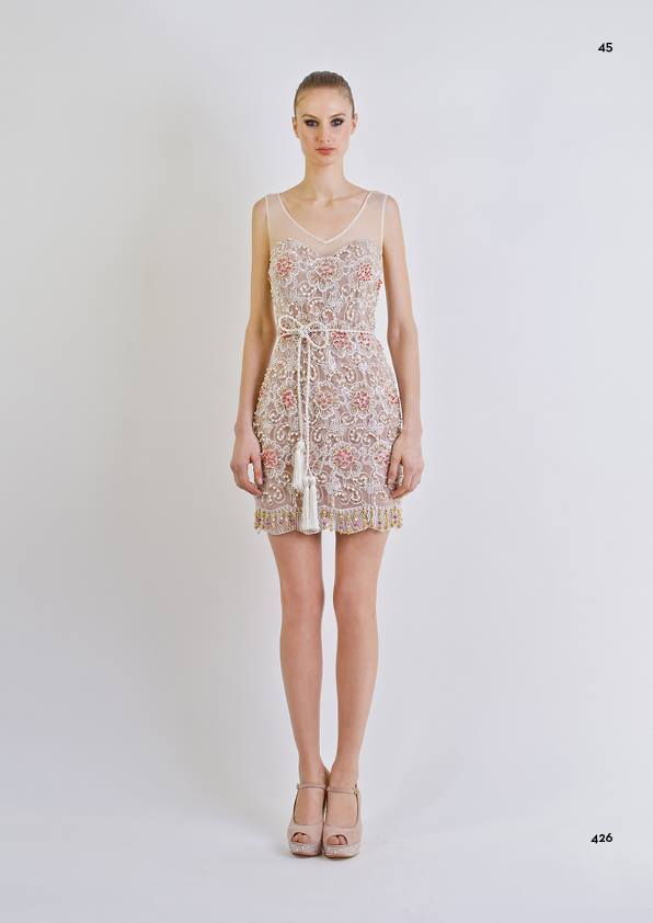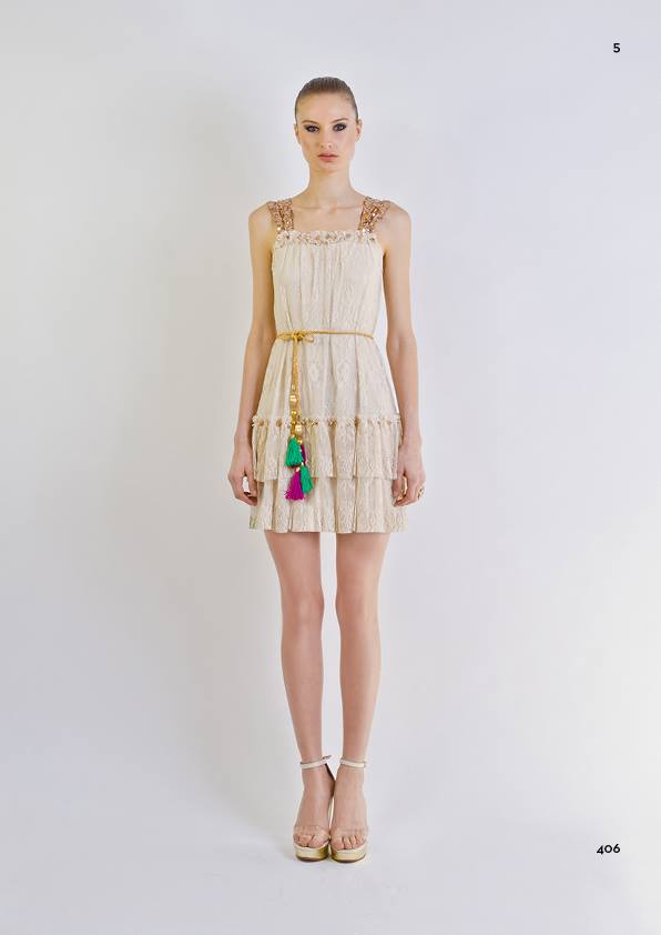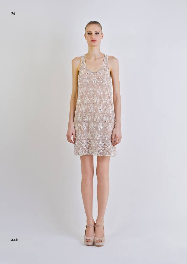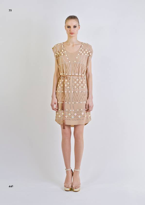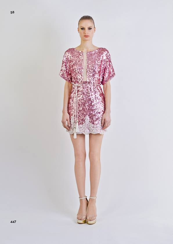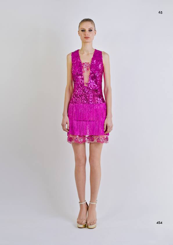 Belle Toujours se inspira en el glamour de los años ’20 y hace de la opulencia su emblema, sumando casi como fueran capas elementos en apariencia contradictorios pero que en la ejecución resultan en un lujo evidente. Las tachas se cruzan con los encajes, se suman a las lentejuelas y se mezclan con los flecos, para generar recorridos volumétricos que no dan respiro.