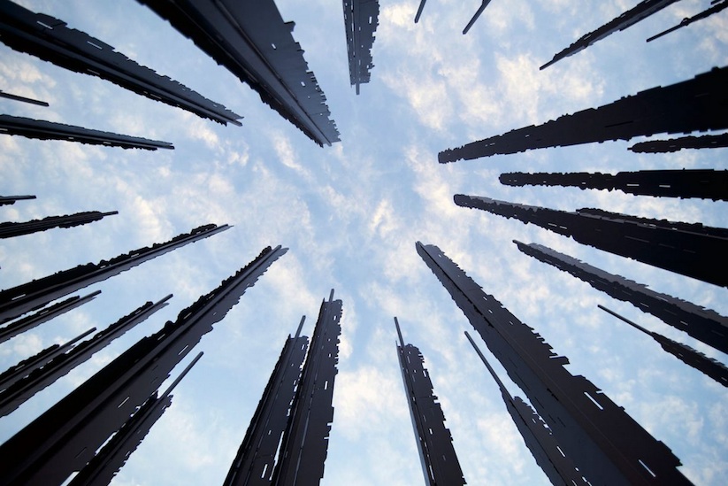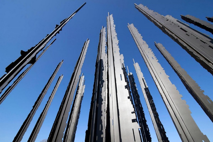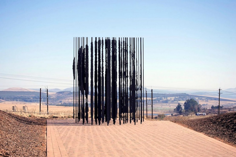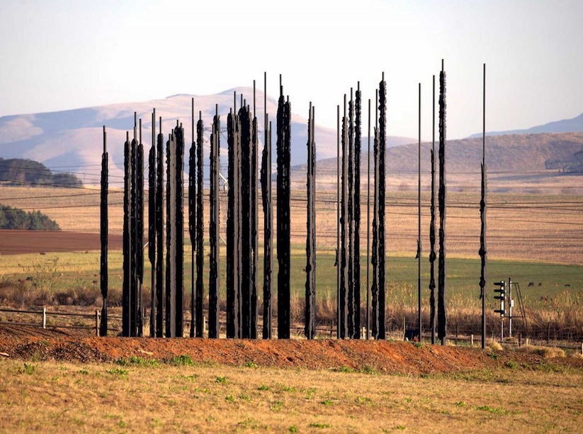 50 columnas de acero de 6,5 y 9 metros de altura, que representan los 50 años transcurridos desde aquella captara al lider sudafricano.