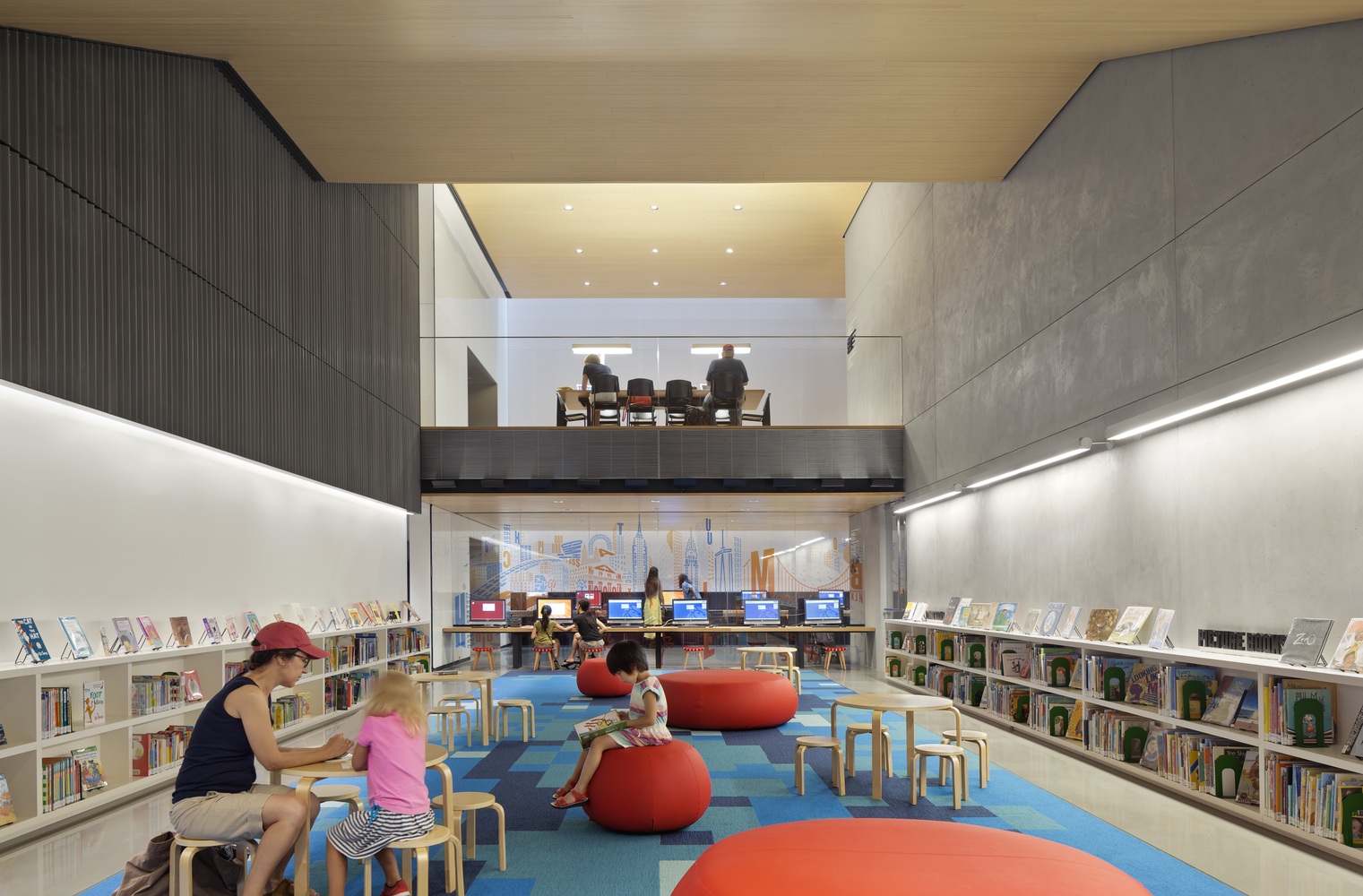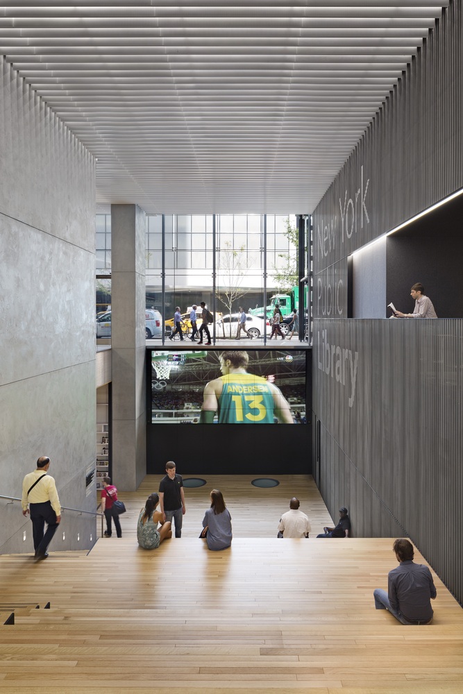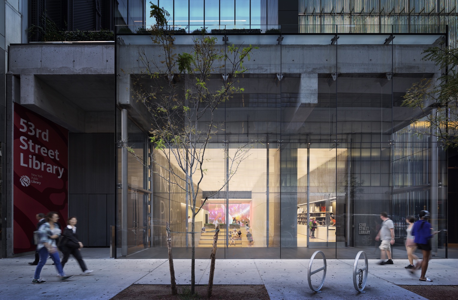 Ubicada en una zona comercial y residencial del centro de Manhattan, la renovada biblioteca pública de Nueva York, justo frente al Museum of Modern Art (MoMA) devuelve y reconfigura el espacio público para detonar comunidades locales y de turismo. La biblioteca se inserta en un nuevo hotel de 40 pisos ocupando la planta baja, almacén y niveles inferiores, de tal forma que la propuesta modifica un sitio oscuro y enterrado para abrirlo hacia la ciudad.