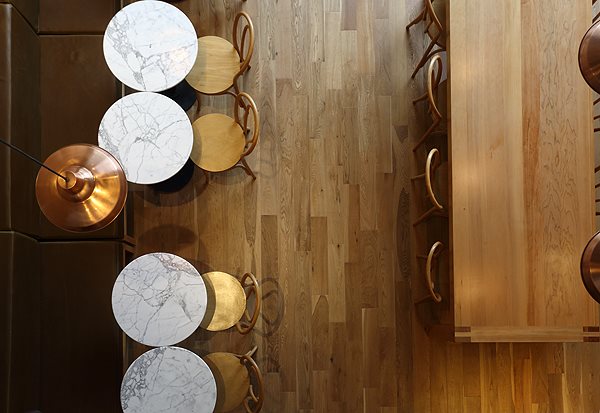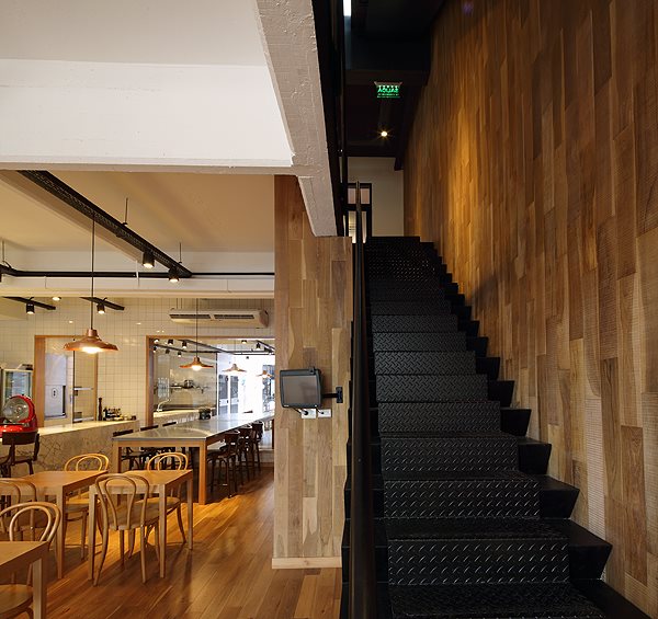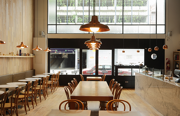 Se respiran aires neoyorkinos al entrar, un poco gracias a la identidad del lugar, creada junto a Paco Savio y “Remolino”, su agencia creativa. Azulejos de subte, madera clara, apliques de bronce y espacios amplios le dan un toque especial, en donde se destaca la cocina abierta, que permite transparentar de principio a fin todo el proceso de producción de la comida.