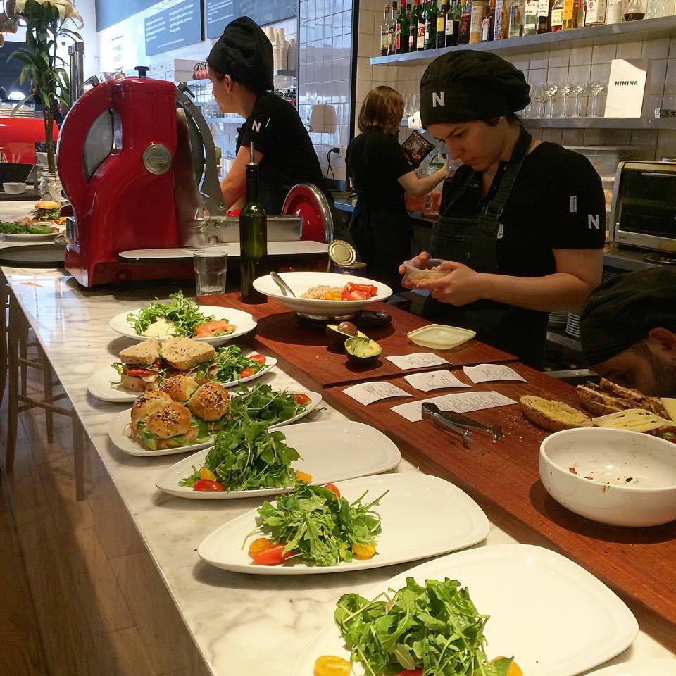 El estilo de comida que van a encontrar en Ninina tiene una mezcla de casero y urbano, que combina una cocina con platos de ingredientes naturales con propuestas modernas. Encontramos platos que van desde Ribs de cerdo con barbacoa casera, berenjenas asadas y flores de coliflor para la cena, pasando por ensaladas con burrata, jamón crudo, rúcula selvática y tomates secos, hasta una Kale Caesar para tentarse a la hora del almuerzo.