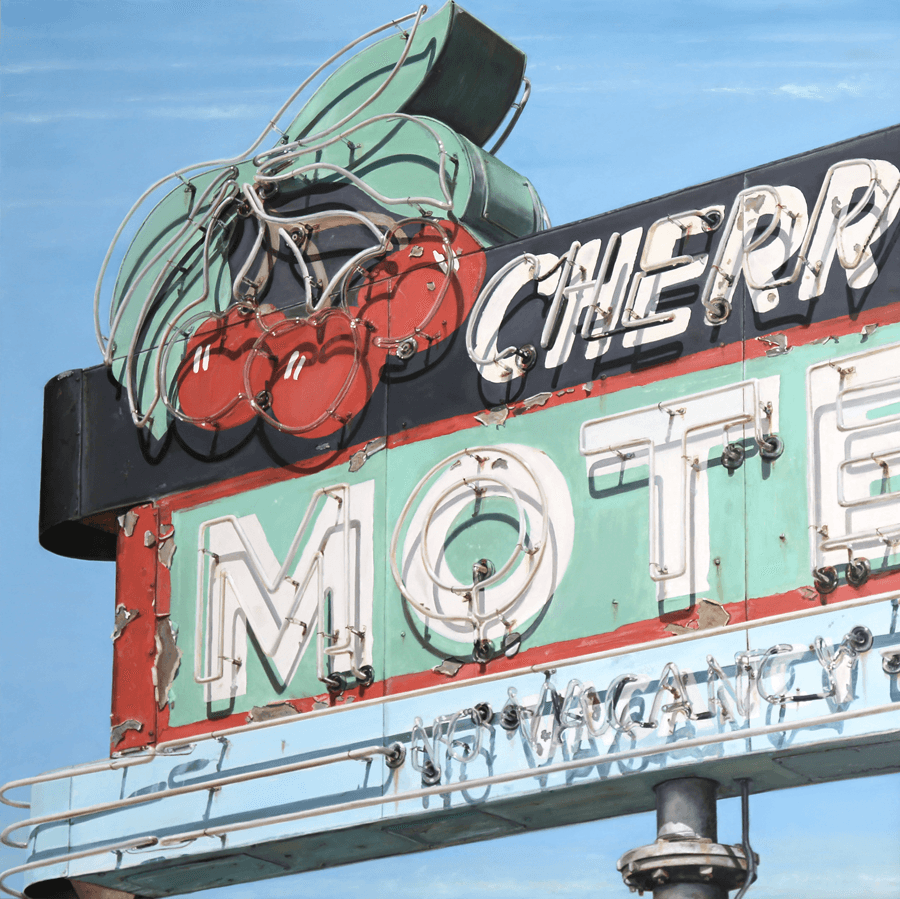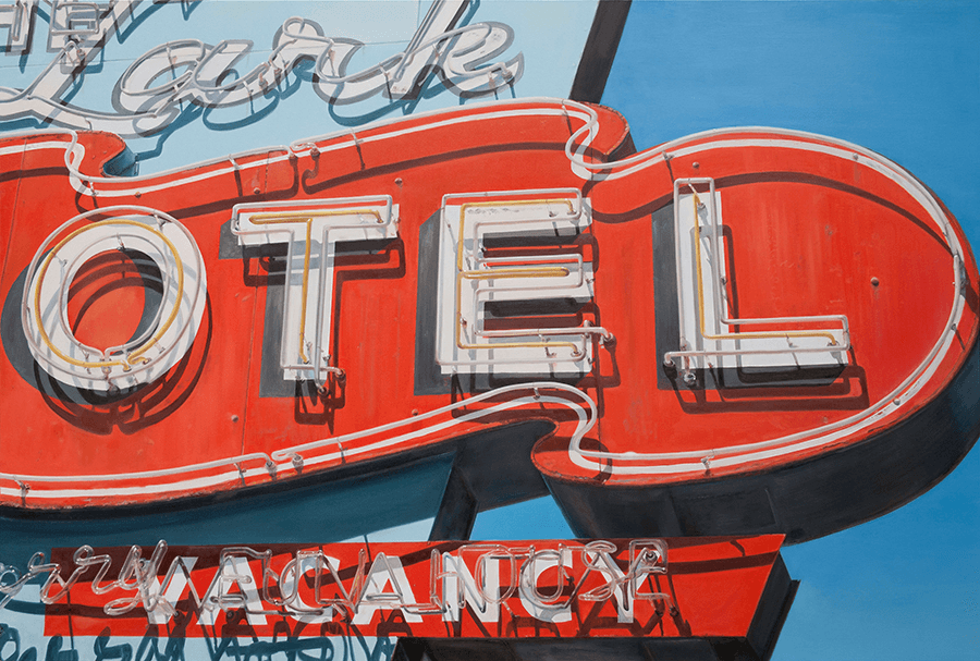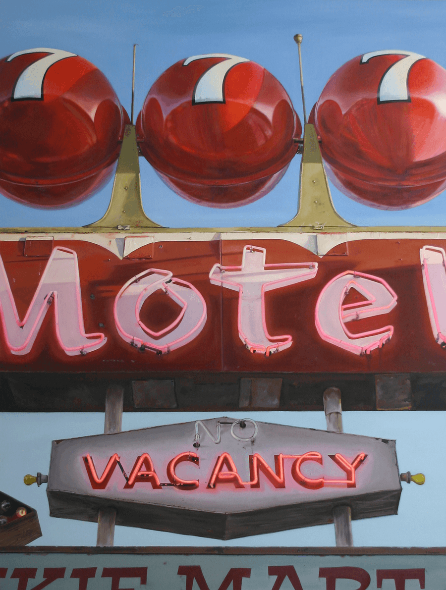 “No Vacancy” debido a que la mayoría de obras hiperrealistas hechas en oleo son de carteles de hoteles.