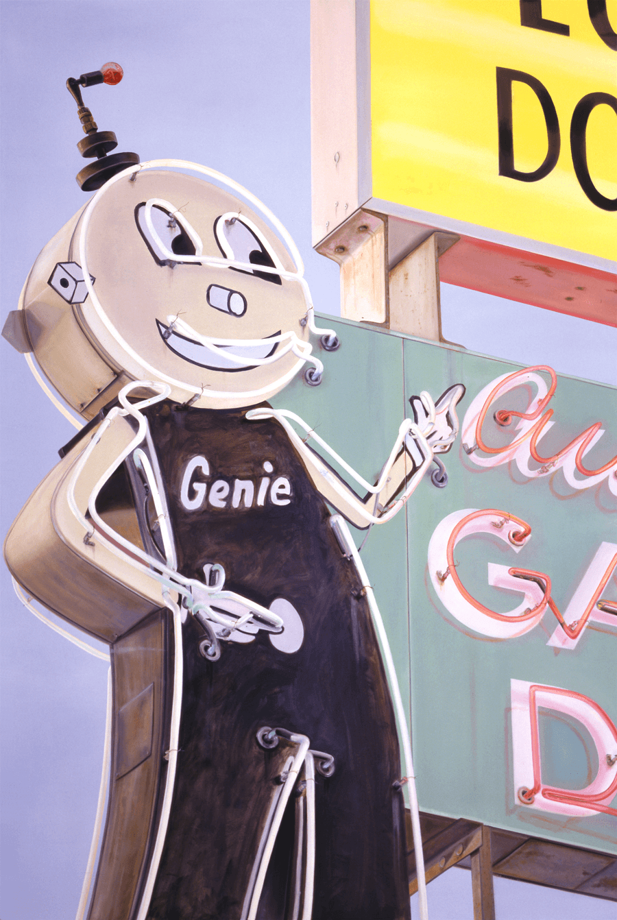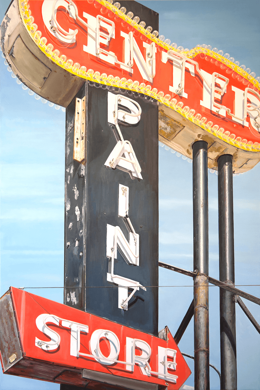 Por más de una década se concentro en pintar viejos carteles de neón, ya que los encontraba cargados de emoción y de historia, y lo que quería mostrar de ellos era la belleza oculta por afuera de la banalidad.