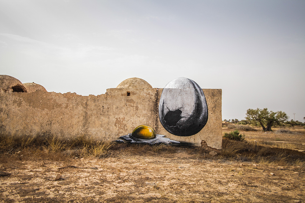 Son 150 artistas los convocados a intervenir el barrio de Djerba, aunque son los murales de uno de nuestros artistas favoritos los que mejor lograron integran el espíritu del lugar con un giro vanguardista.
