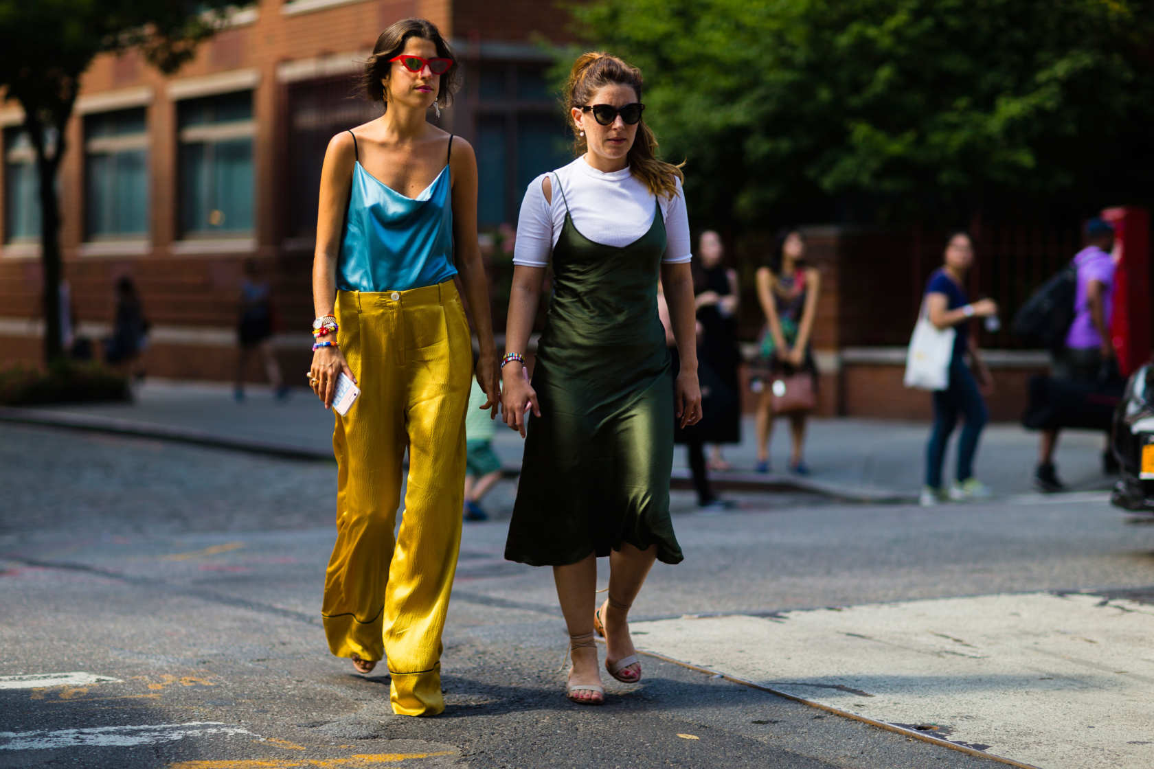 Eran furor a fines de los ’90 y ahora vuelven, recargados. Los vestidos lenceros o slip dress se bajaron de las pasarelas primaverales de hace unos años para vestirse, generalmente, por encima de remeras básicas. No es una tendencia que me fascine, sigo viendo la combinación como un híbrido medio extraño, pero sin lugar a dudas es furor.